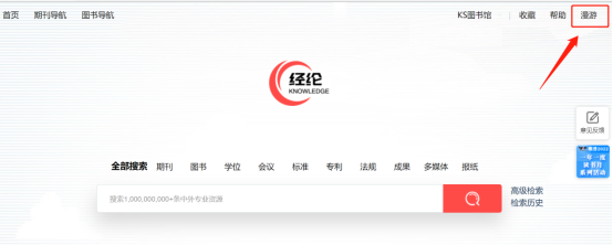 在校园IP范围内自动登录,通过图书馆网站或直接访问经纶数据库网址http://k.vipslib.com进入,若需在校园IP范围外使用经纶资源数据库,可在校园内注册个人漫游账号登录系统,就可以在校园外使用,同时还可通过个人账号追溯以往学习轨迹。