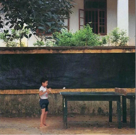 在他的镜头下,男孩子们很野、很尽兴。他们会拿着玩具枪打仗,在湖边光膀子打赤脚抓鱼,抱着比自己脸大的橘子汽水瓶,下雨了也要在木台上打乒乓球,放学路上勾肩搭背讲悄悄话……