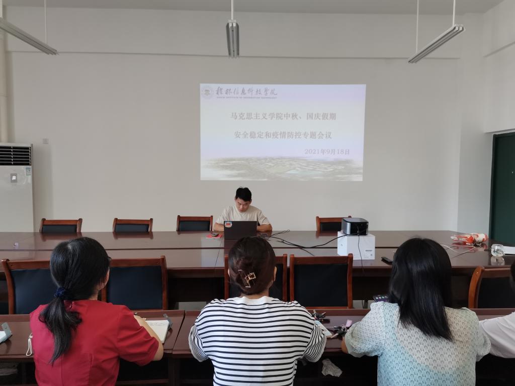 为落实疫情防控要求,9月18日上午,马克思主义学院在52510会议室召开中秋、国庆假期稳定和疫情防控专题会议。会议由王硕主持,马克思主义学院全体教师参加。