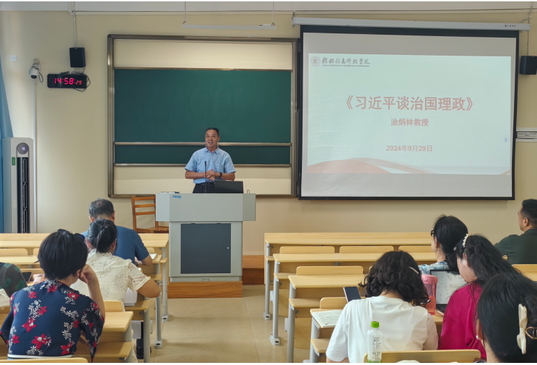 会上,涂炳林教授对《习近平谈治国理政》第四卷中的三个章节——掌握历史主动、在新时代更好地坚持和发展中国特色社会主义、坚持党的全面领导、推进社会主义文化强国等议题,进行了深刻而全面的学习心得分享。他从理论与实践相结合的角度,深入剖析了这些重要议题,并结合具体案例,为各位教师深入学习贯彻习近平新时代中国特色社会主义思想提供了宝贵的思想资源和行动指南。