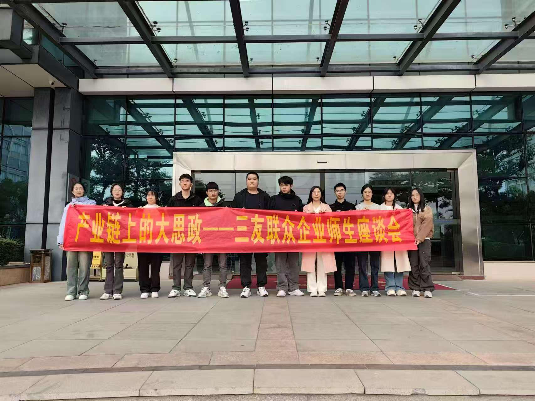在三友联众集团股份有限公司和东莞锦美运动用品有限公司,学生代表首先介绍了公司概况,随后实地考察了生产车间和设备车间,同学们详细讲解了工作内容与标准。在师生座谈会上,王岩、肖碧清两位老师围绕实习困惑、理论实践转化及强国建设中的责任等议题深入交流,老师们将思政理论与产业实践案例融合,引导学生们理解“立德树人”、“工匠精神”及“实业报国”的意义,鼓励他们将个人优势转化为国家发展的动力。