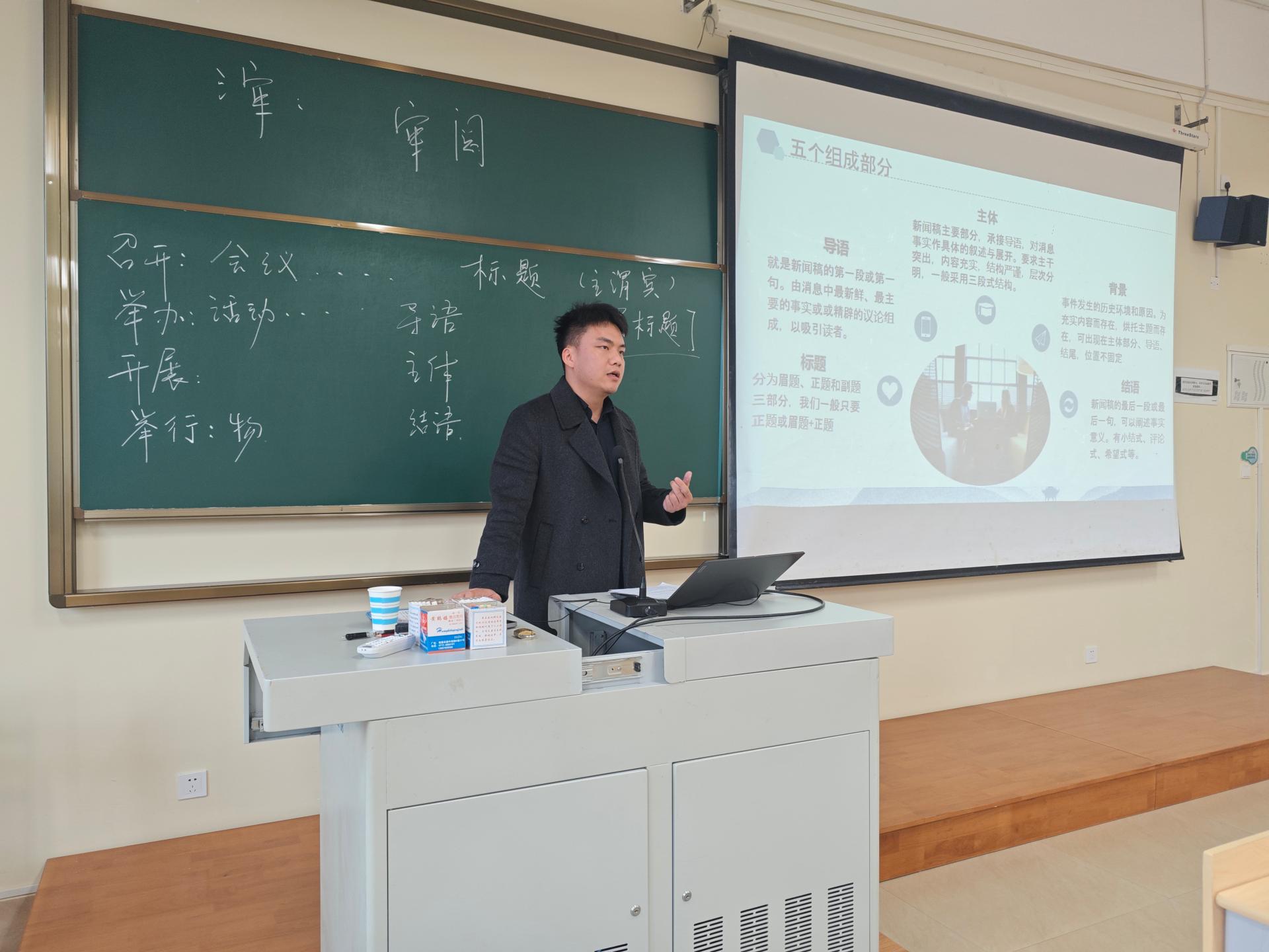 近日,为进一步强化教师新闻撰写能力、提高学院新闻宣传工作质量,马克思主义学院于2025年3月14日在C515教室开展了新闻写作能力提升专题培训。此次活动邀请党委宣传部林小东老师主讲,全体教职工参加。