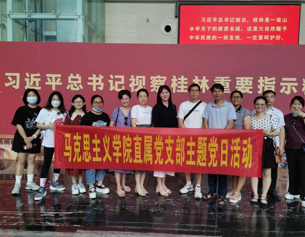 为贯彻落实习近平总书记视察广西“4.27”重要讲话精神,6月24日,马克思主义学院直属党支部赴桂林博物馆参观习近平总书记视察桂林重要指示精神一周年成果展。