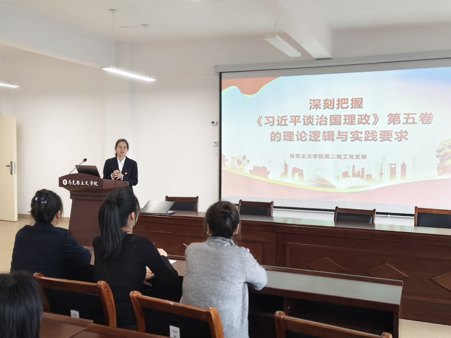 10月31日,马克思主义学院第二教工党支部在G605组织开展《习近平谈治国理政》第五卷专题学习。本次专题学习由支部书记何亚慧主持并领学,全体党员教师参与。