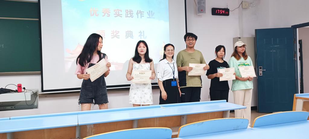 周丽老师为获奖的同学颁发奖状,同学们表示以“奖”促学实践作业评选,体现了老师对学生学习的充分肯定,给自己大学期间学习的政治课程留下深刻印象,让自己爱上思政课。