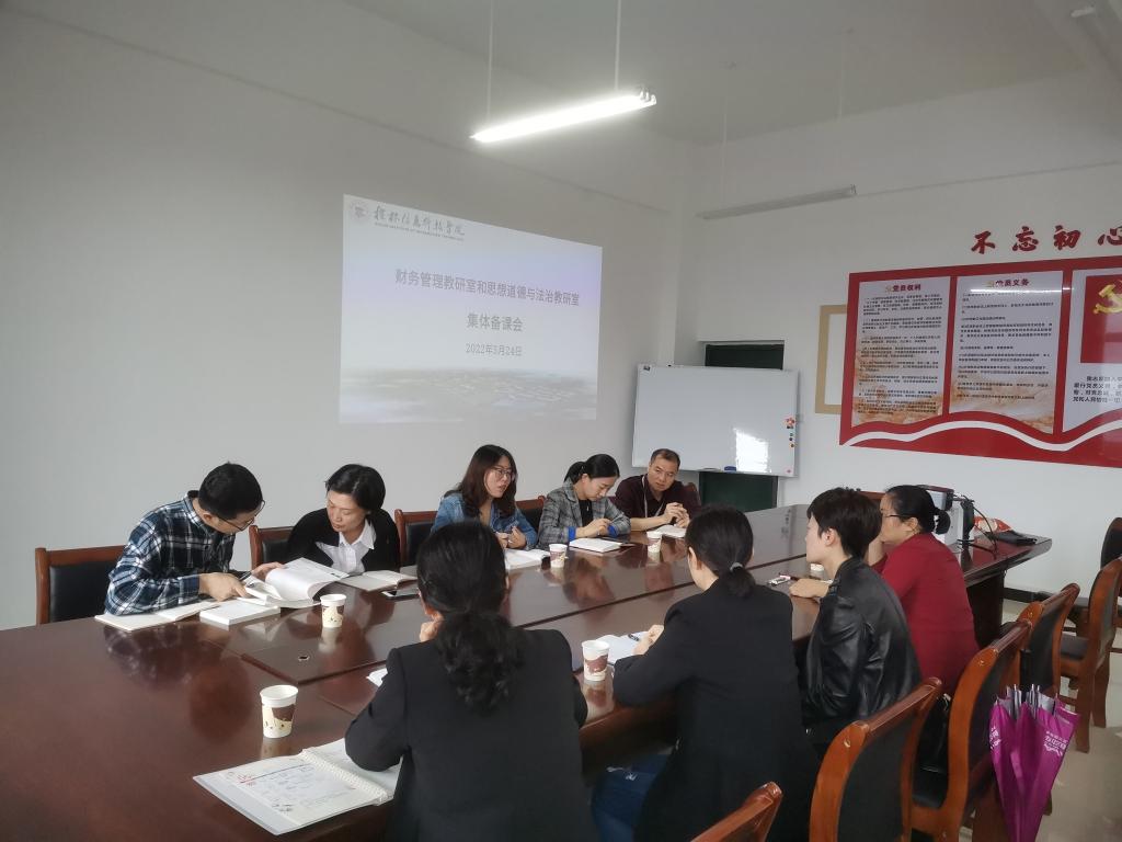 备课会上,老师们就如何找到财务管理相关课程与思想政治教育的结合点,如何充分发挥学科育德、学科育人的功能展开积极讨论。结合财务管理课程的特点,将家国情怀、民族精神、创新精神等元素通过思政的方法论融入到财务管理相关课程教学中,优化课程主线构建,实现育人良好效果,使专业课与思政元素相互融合,提升课程思政的育人能力。