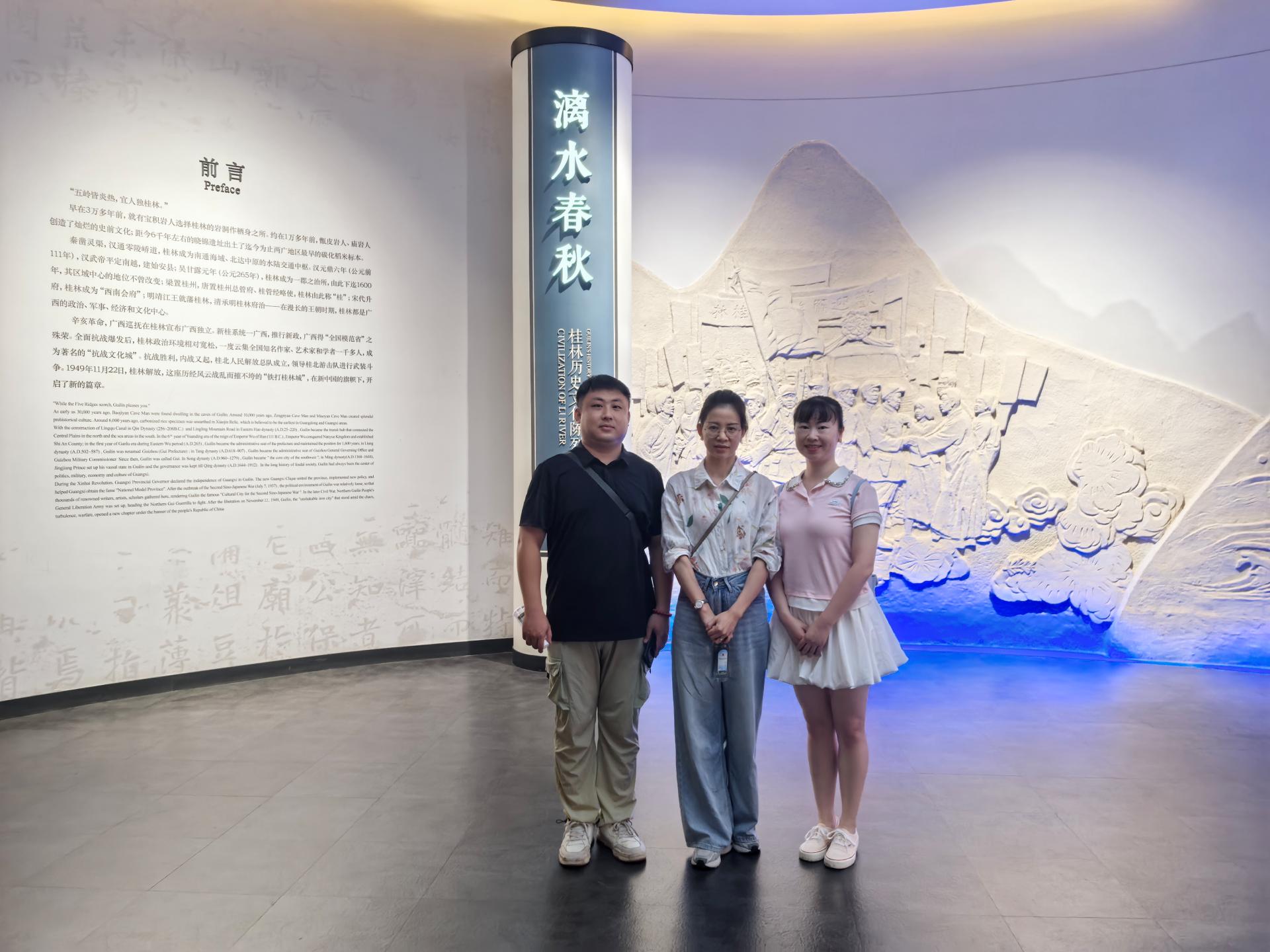 为深入挖掘本土文化中的思政育人价值,8月12日至13日马克思主义学院第二教工党支部书记何亚慧联合信息工程学院党委副书记廖星男、体育与健康学院学工办主任谢长远开展了“寻迹桂林文脉,铸魂时代新人”暑期社会实践活动,团队成员先后走进桂林博物馆、陈继昌纪念馆、陈宏谋宗祠,从多个维度探寻桂林历史文化基因,为思政教育注入深厚的本土历史文化底蕴。