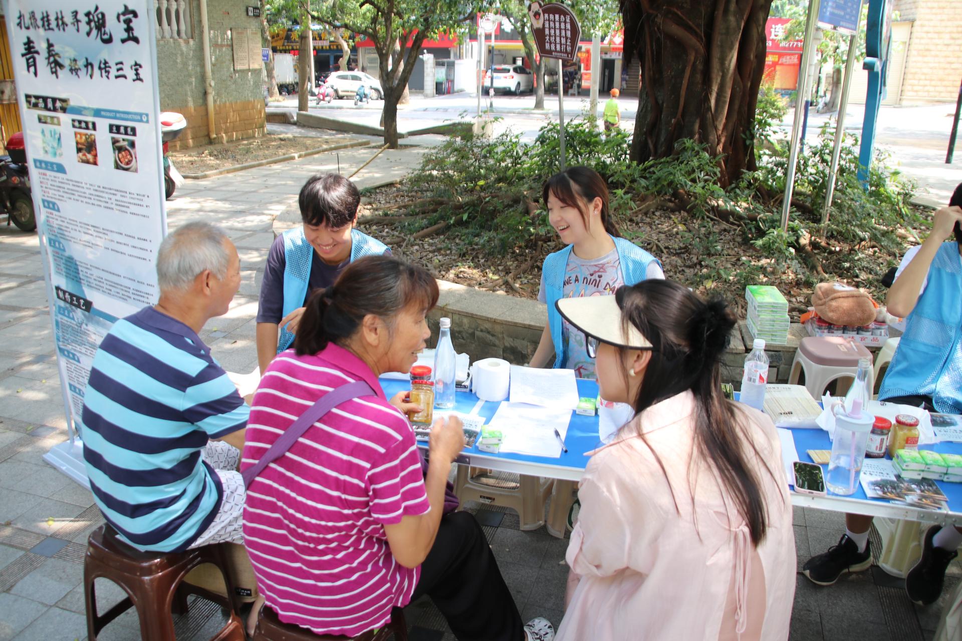在“扎根桂林寻瑰宝,青春接力传三宝”主题实践中,思政教师充分发挥思想引领作用,指导团队深入“桂林三宝”非遗核心区,通过拜访传承人、观摩传统工艺、记录口述史等方式,建立起数字化资源库,为非遗保护留存珍贵档案。调研发现超半数民众对“桂林三宝”认知有限,思政教师引导团队从“文化自信”和“青年使命”的高度思考对策,组织学生设计宣传材料,走进社区开展实物展示、品尝体验等互动活动,生动传播非遗文化。这一实践既增强了民众文化认同,又让学生在服务社会中深化了对“工匠精神”和“文化传承”的理解,实现了思政教育与文化传承的有机融合,展现了新时代青年传承中华优秀传统文化的责任担当。