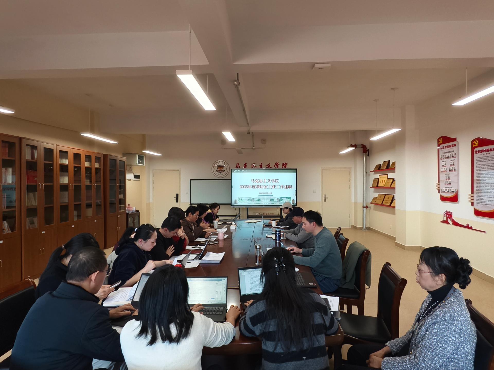 12月26日,马克思主义学院在G610会议室召开教研室主任述职工作会议。学院领导班子全体成员出席会议,包括院长邱启照、党总支书记赵奕、副院长赖学良。各教研室主任依次进行工作述职。