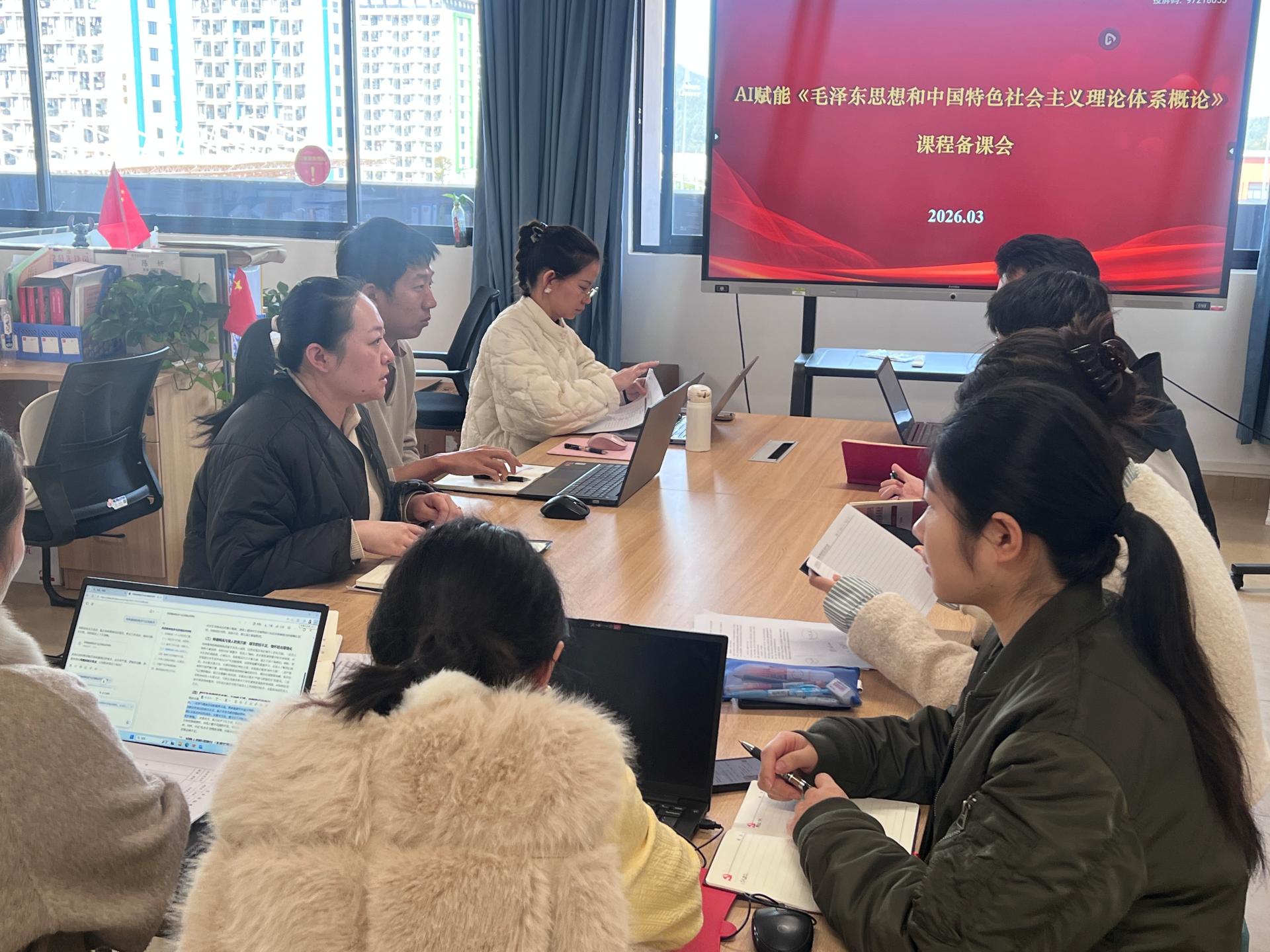为深化人工智能技术与思政课程的融合创新,全面提升《毛泽东思想和中国特色社会主义理论体系概论》课程的教学质量,毛泽东思想和中国特色社会主义理论体系概论教研室于3月6日在G617会议室开展“AI赋能思政课”专题集体备课会。会议由教研室主任剌啸媛主持,全体任课教师参会。