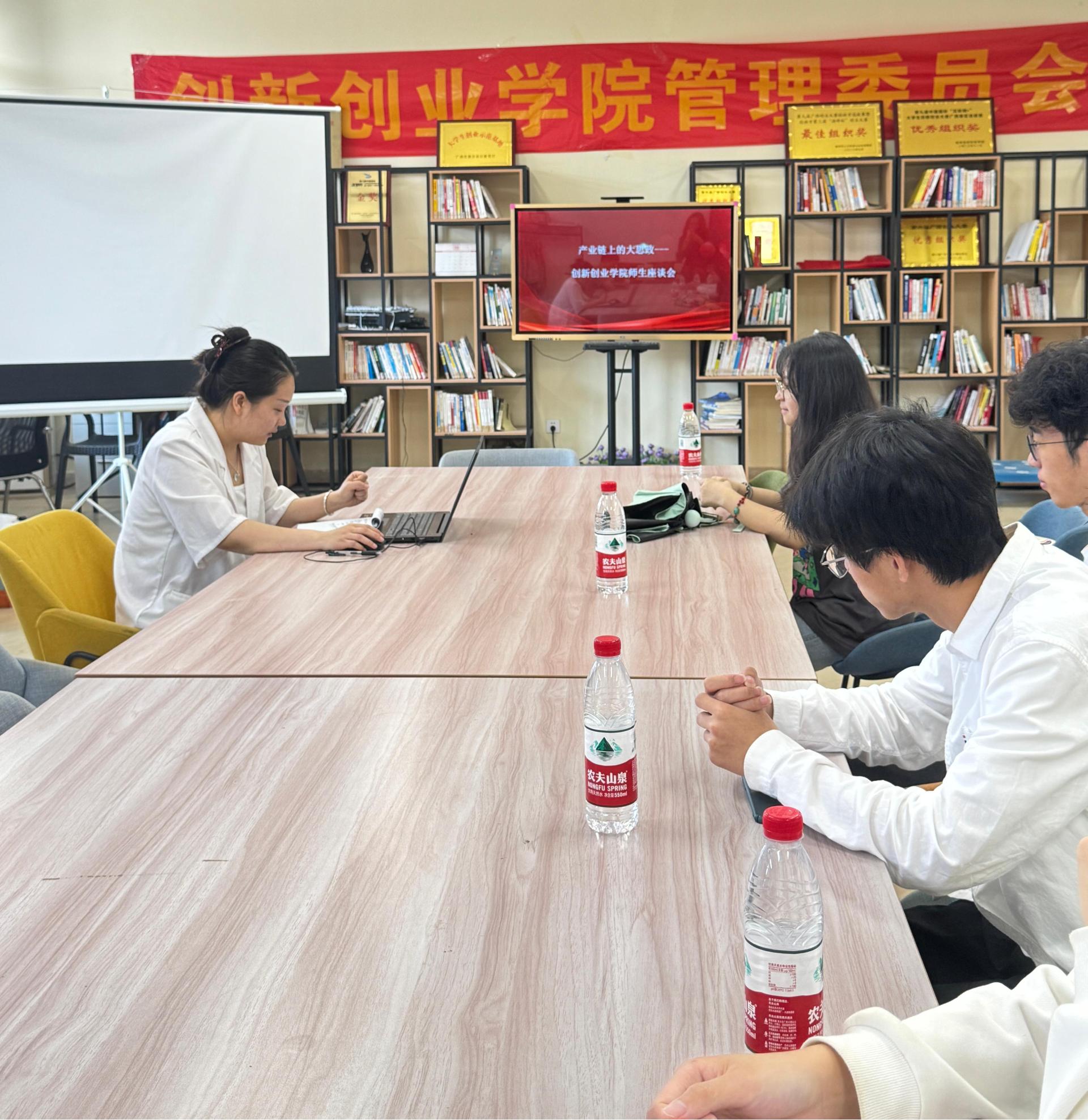 在师生座谈会上,常樟平、杨茗茗两位教师以“新时代产业链变革中的青年担当”破题,结合人工智能、绿色制造等新兴产业的发展趋势,提出“专业素养与家国情怀双轮驱动”的育人理念,激励青年学子既要锤炼过硬专业技能,更要筑牢家国情怀,将个人创新实践融入国家产业链现代化建设的宏伟蓝图。同时,在“双创竞赛的价值导向”等议题深度研讨环节,师生就“作品孵化、成果转化”展开思想碰撞,现场涌现出“技术攻关中的价值引领”“创新成果的民生导向”等具有思政深度的研讨成果。