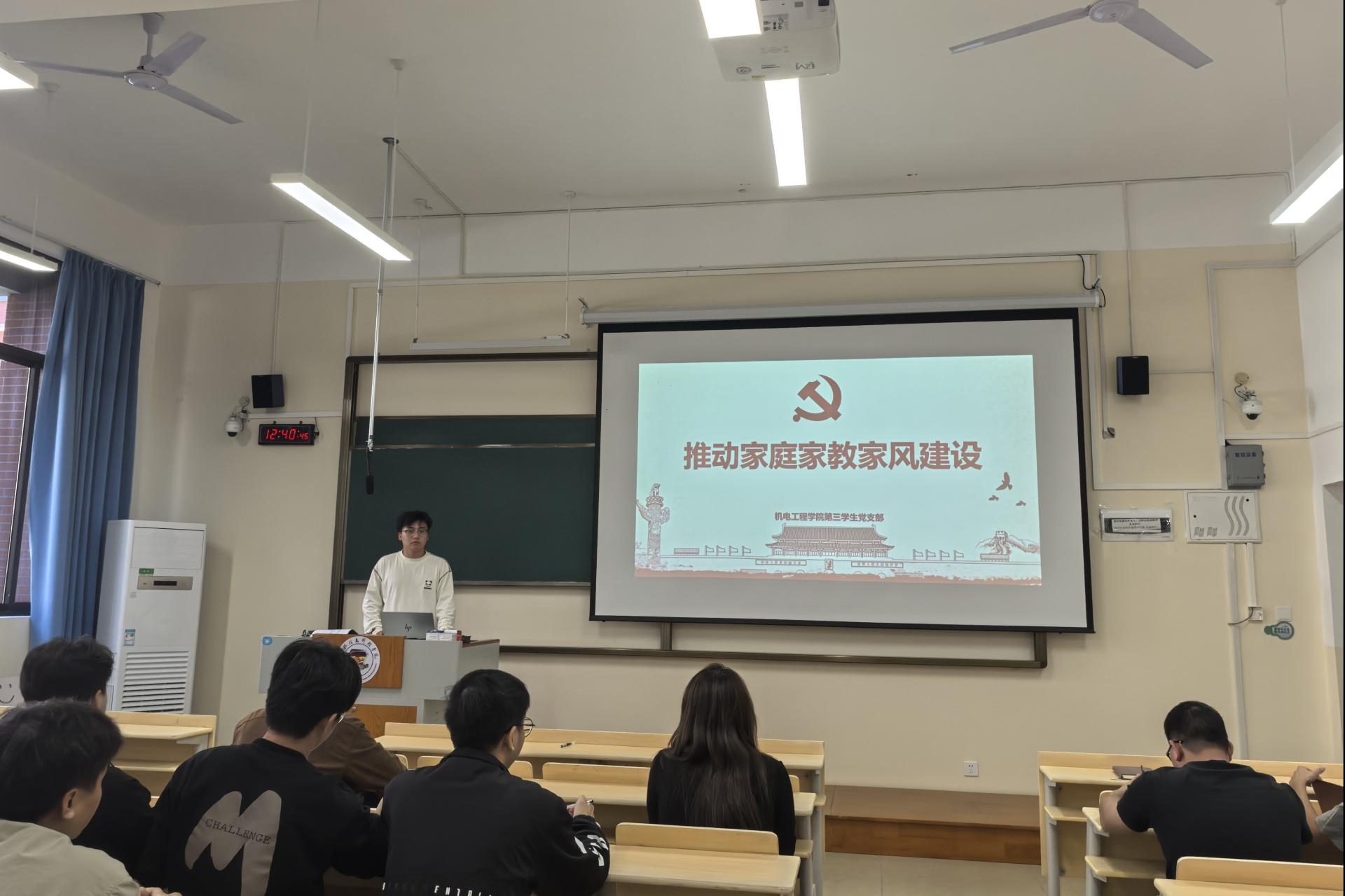 为深入贯彻落实习近平总书记关于注重家庭家教家风建设的重要论述,进一步弘扬校园廉洁文化,增强全体师生廉洁自律意识,10月28日-31日机电工程学院师生党支部分别在E512活动室、D105教室开展廉洁家风读书分享会,会议由各支部书记主持,全体师生党员参加会议。