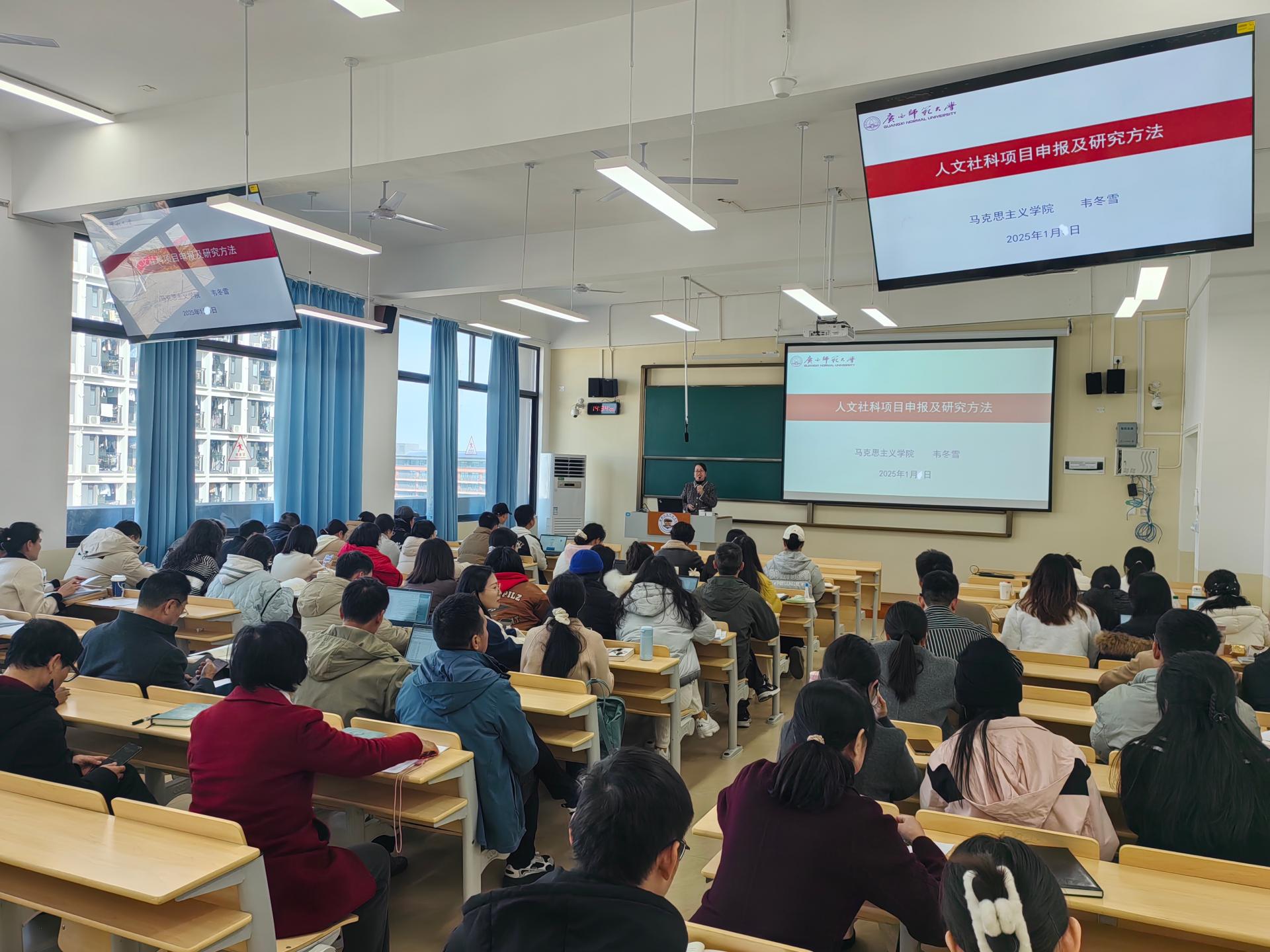 1月6日,马克思主义学院在C511教室组织开展了“人文社科项目申报及研究过程”学术讲座。本次讲座由广西师范大学马克思主义学院韦冬雪教授主讲,马克思主义学院全体教师参加。