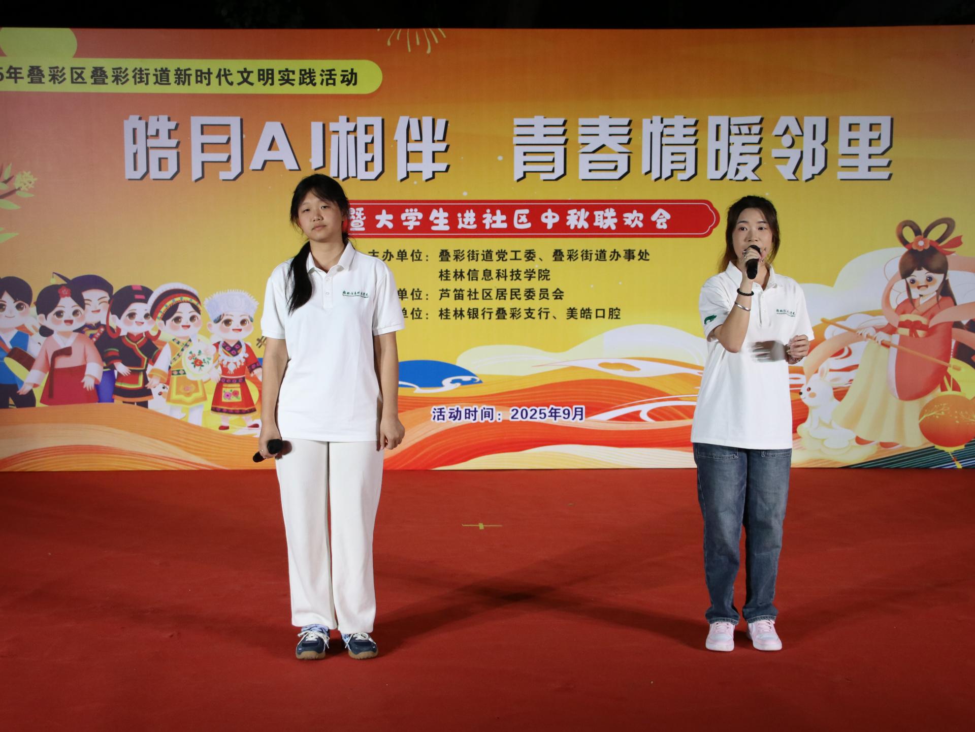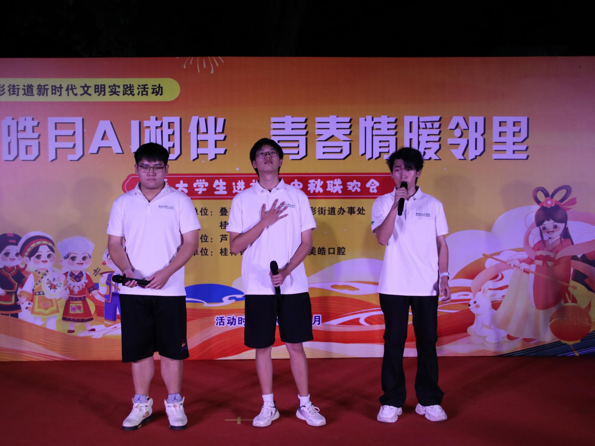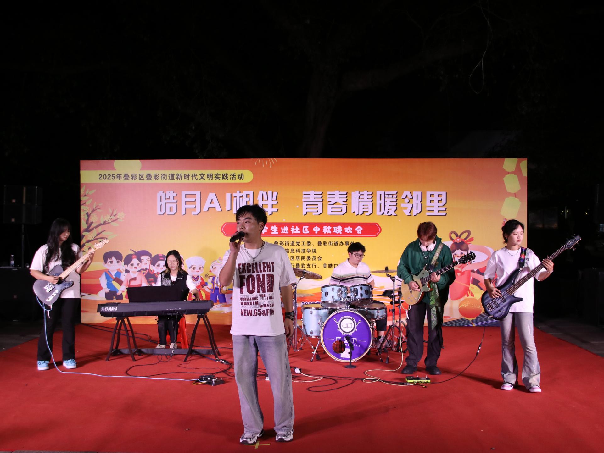 为深化校社协同育人机制,引领青年学子在服务社会中践行使命担当,9月26日晚,学校团委组织60余名师生走进芦笛社区,开展“皓月AI相伴 青春情暖邻里”大学生进社区中秋联欢会,通过文化展演、科技互动等形式,为社区居民呈上了一场精彩纷呈的节日盛宴,用青春力量传递温暖与祝福。