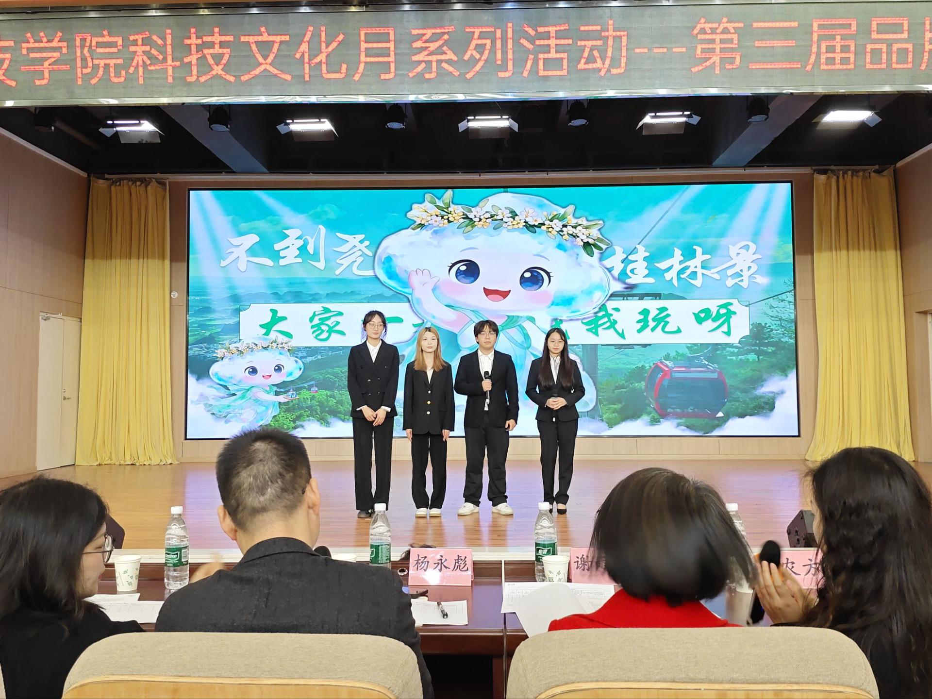 12月6日,学校科技文化月系列活动——beat365中文官方网站第三届品牌策划竞赛校赛暨2026年全国高校商业精英挑战赛品牌策划竞赛全国总决赛校内选拔赛在F107报告厅顺利举行。桂林旅游学院谢雨萍教授、外贸与外语学院酒店管理教研室杨永彪博士、酒店管理教研室主任黄艳老师、实践教研室主任农方老师担任本次大赛的评委,为赛事专业把关。