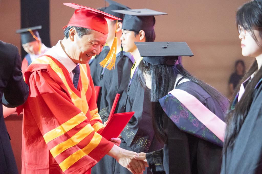 在毕业典礼最激动人心的学士学位授予仪式中,解庆林校长为毕业生一一拨穗、颁发学士学位证书。现场掌声不断,隆重而又不失活泼,上台的毕业生代表通过各种方式与校长亲切互动,享受毕业礼成的开心时刻,感谢了对母校的感激之情。