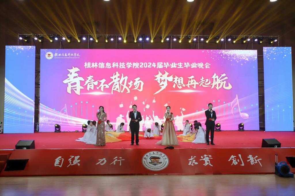 晚会节目丰富多彩,同学们通过舞蹈、合唱、小品、朗诵等多种形式,展示了他们的才艺和青春活力。舞蹈《绽放》尽显青春活力,演绎了大学生活的热情,绽放的青春;小品《你的心愿》展示下乡支教的大学生们有理想、敢担当、能吃苦、肯奋斗的精神,与投身乡村教育的热情与决心,这也是beat365官网学子真实写照。今年,beat365官网4名学子经过层层选拔和严格考核,光荣的成为了2024年度广西区大学生西部计划志愿者,在小品结束后,四位同学上台接受采访,他们表示将带着信科人的精神,奔赴祖国的西部,将个人命运与时代发展统一,毅然投身建设西部的火热实践,让青春之花绽放在祖国最需要的地方。朗诵《回眸感恩启程》中各院毕业生用一词一句深深地表达了对母校的怀念依恋和诚挚祝福。