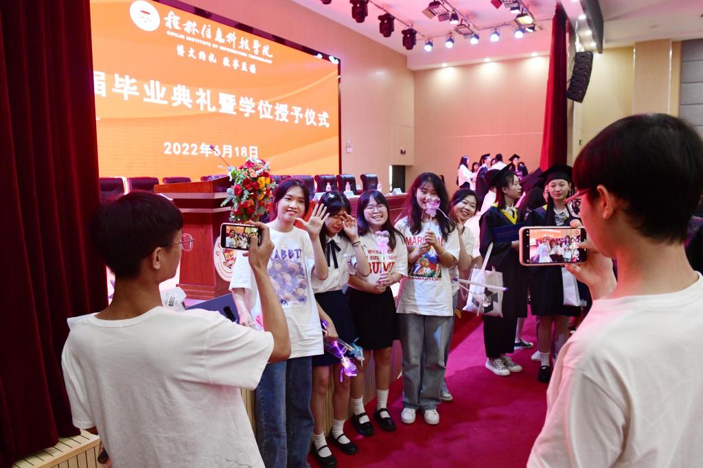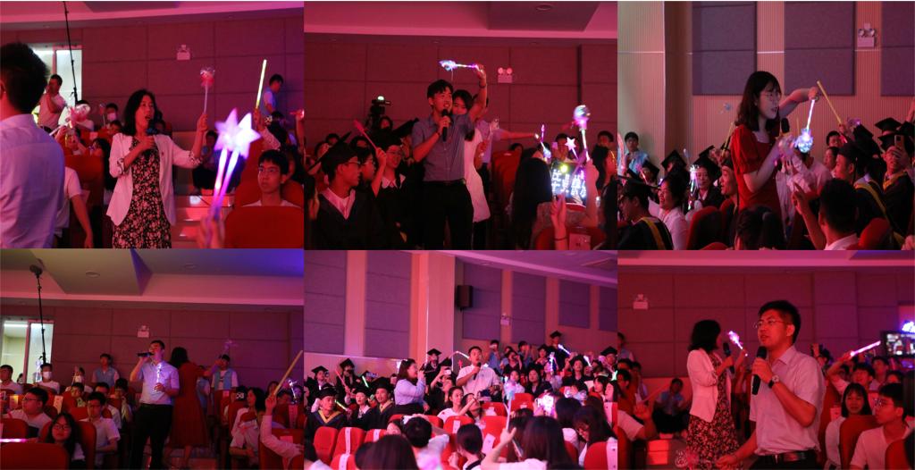 最后,毕业班辅导员以歌抒情,演唱《同桌的你》、《凤凰花开的路口》和《后来》等曲目,现场气氛再次掀起高潮。
