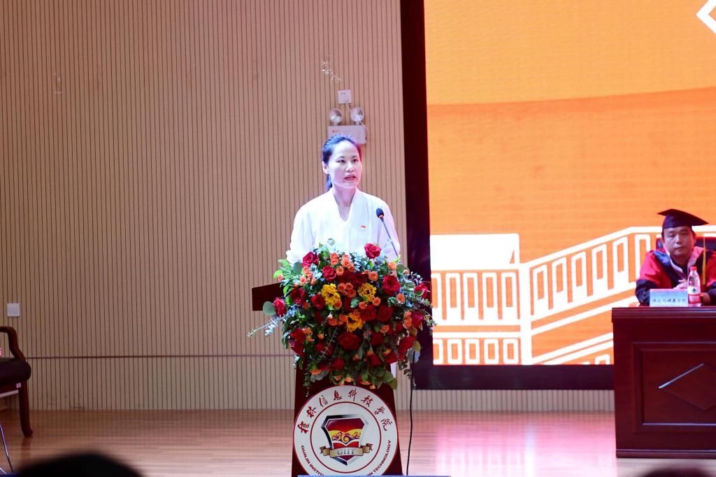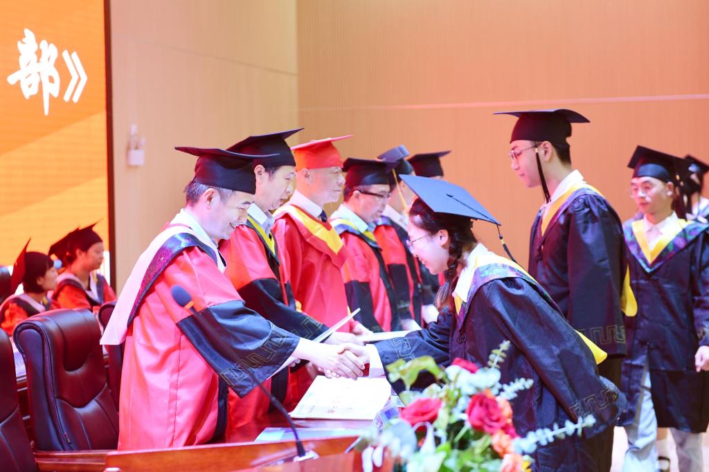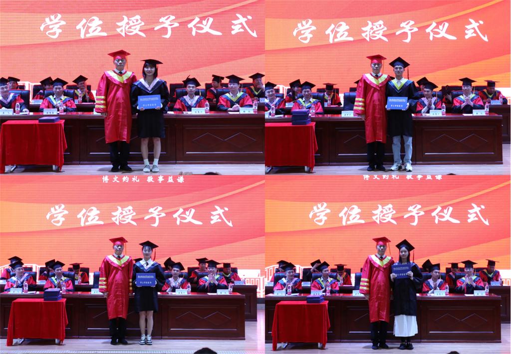 学校党委书记甘勇宣读了2022届优秀毕业生表彰文件,副校长陈智勇宣读学校2022届毕业生学位授予决定。学校领导分别为自治区优秀毕业生、学校优秀毕业生、优秀毕业生干部颁发获奖证书,为校友理事颁发聘书。