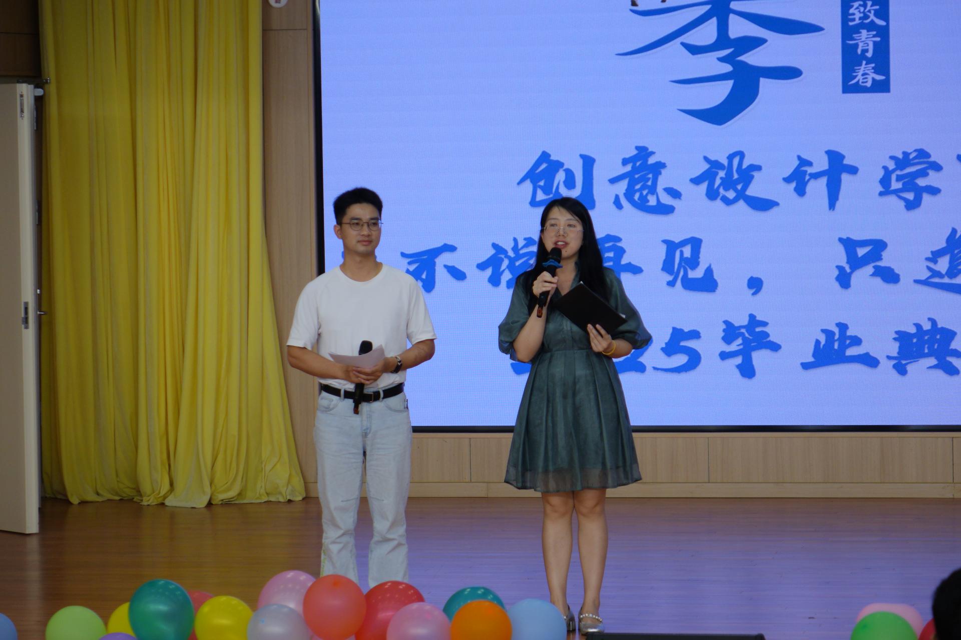 典礼在大学生艺术团活力四射的开场舞中拉开帷幕。韦宛彤老师以诗意的语言回顾了与学生们共度的点滴时光,从课堂上的思维碰撞到深夜修改毕设的执着,每一帧回忆都让现场充满温情。随后,入学记录短片与歌曲《我怀念的》交织呈现,勾起毕业生们对校园生活的无限怀念。