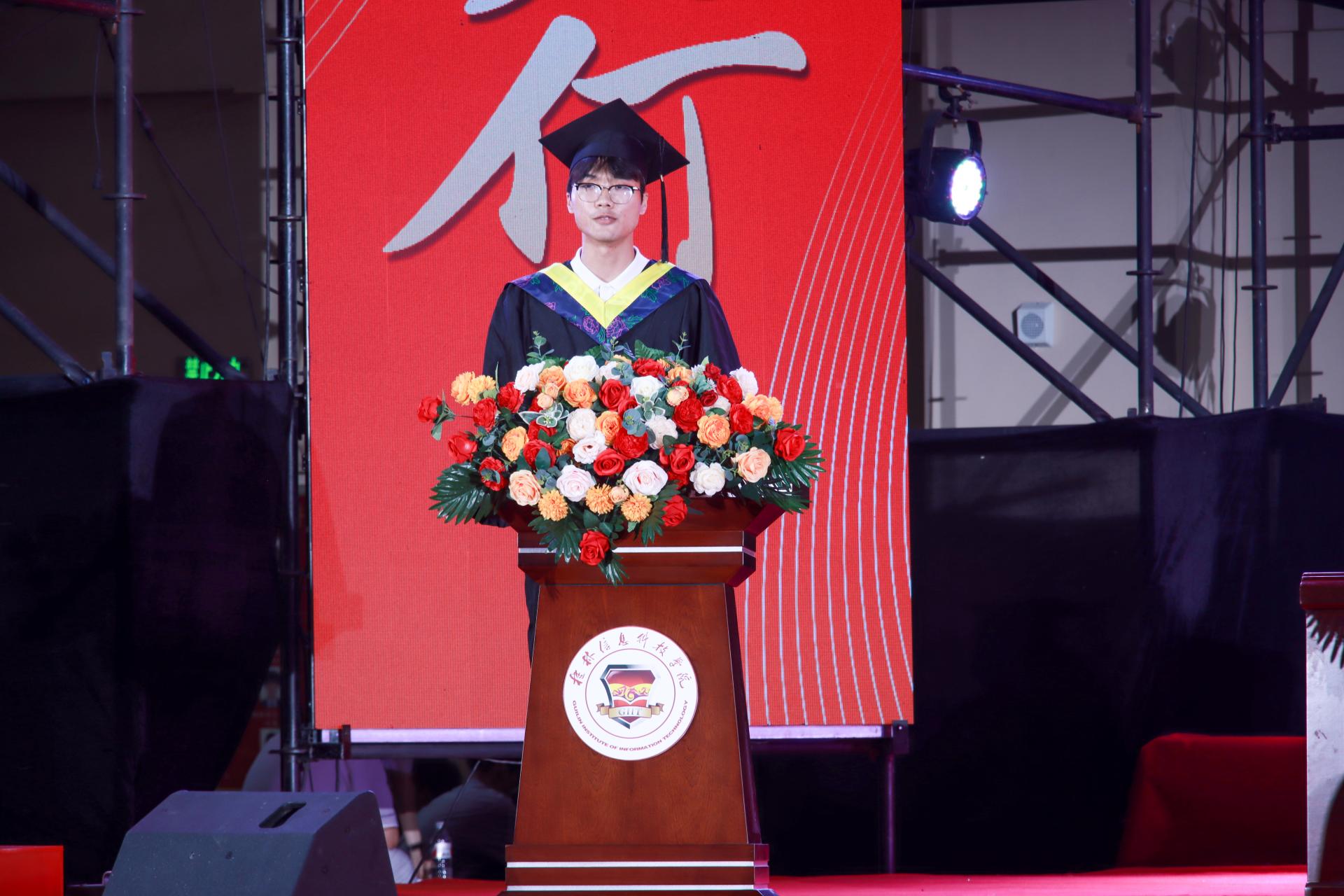 毕业生代表林嘉伟在发言中深情回顾大学时光,感恩母校的培养、师长的教诲与同窗的陪伴。教师代表陈婕在致辞中细数师生情谊,为同学们的成长感到自豪,并送上对未来的殷切祝福与嘱托。