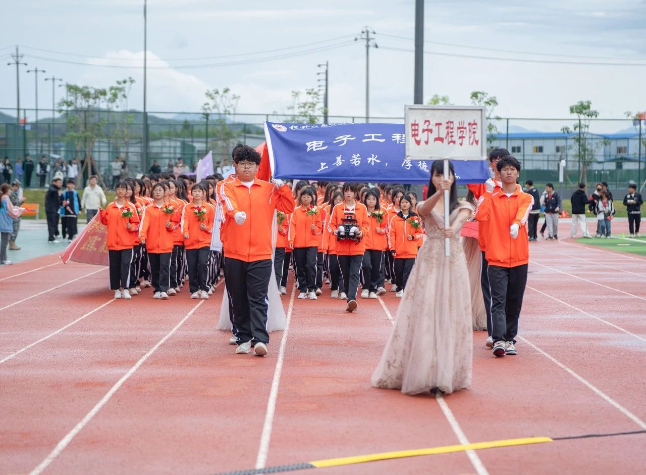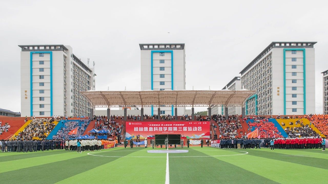 乘着第十九届亚运会东风,学校迎来了临桂校区的首次运动会。开幕式表演上,一曲《象王行》舞蹈表演拉开运动会帷幕,舞蹈刚柔并济,大气磅礴,讲述了“信科人”不畏艰险,努力奋斗的故事;随后,由信息工程学院学生组成的啦啦队带来的舞蹈《同心共筑信科梦,砥砺奋进向未来》将开幕式点燃。同学们挥动花球,向阳而生,代表了信科学子勇赴未来的毅力。节目最后,学生表演团体翩翩舞动、灵活站位,最终凝聚成“我爱信科”四个大字。