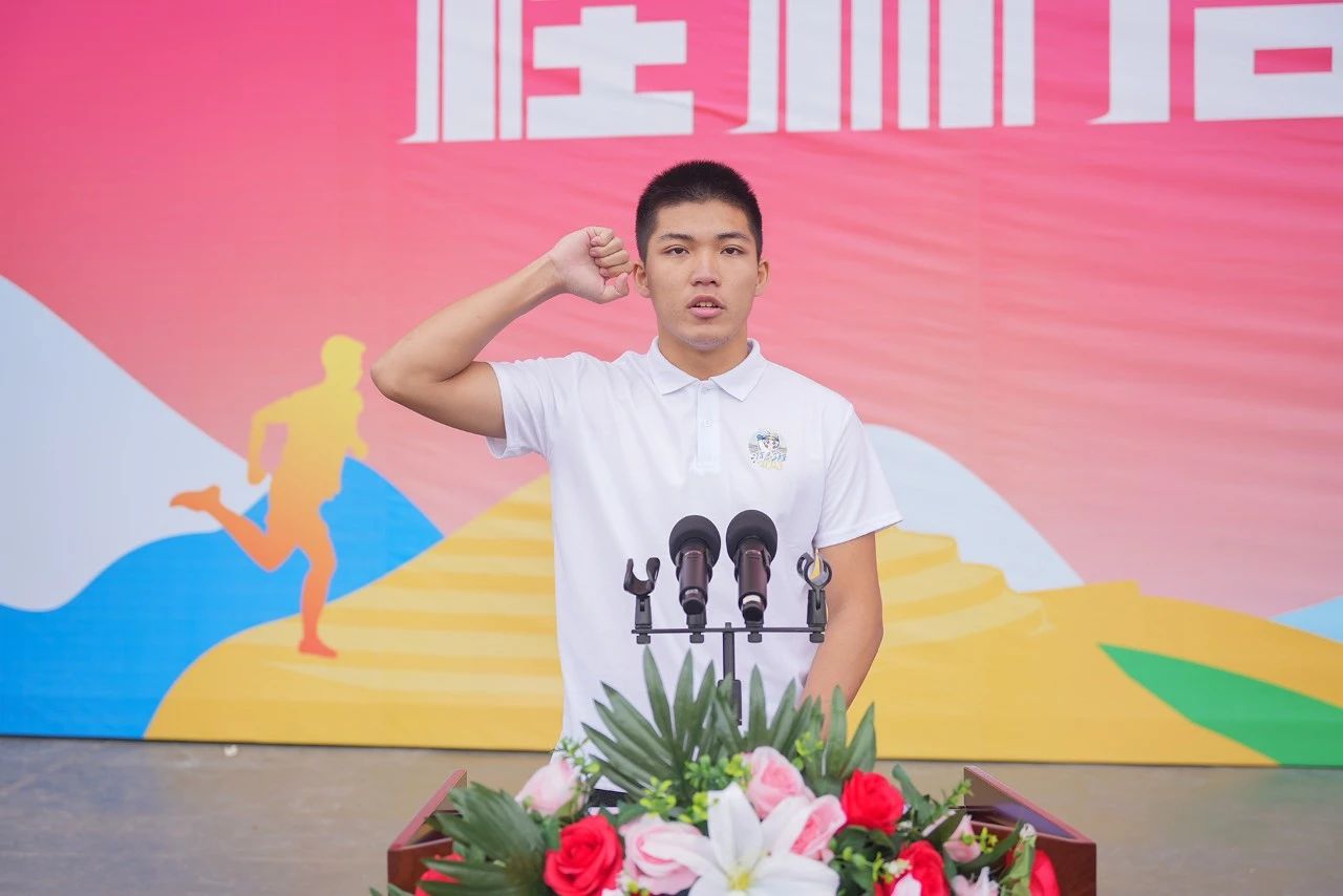 随后,裁判员代表、体育与健康学院牛锁青老师和运动员代表、信息工程学院陈森源同学依次上台宣誓。