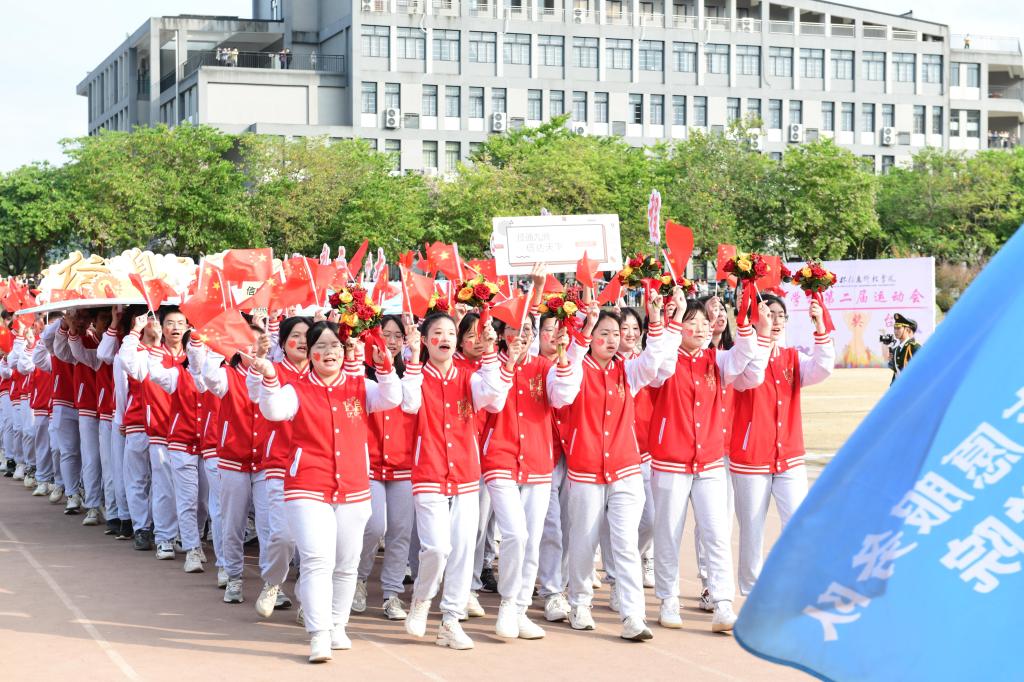外贸与外语学院学生团队啦啦队为现场观众带来热情活力、青春朝气的舞蹈瞬间将开幕式点燃。升国旗仪式后,伴随着主持人的开场和激昂的《运动员进行曲》,国旗、校旗、会旗依次进场,各方阵师生带着各自学科特色优势迈着矫健的步伐依次入场,充分展示了信科师生“献礼二十大 拼搏向未来”的精神面貌。