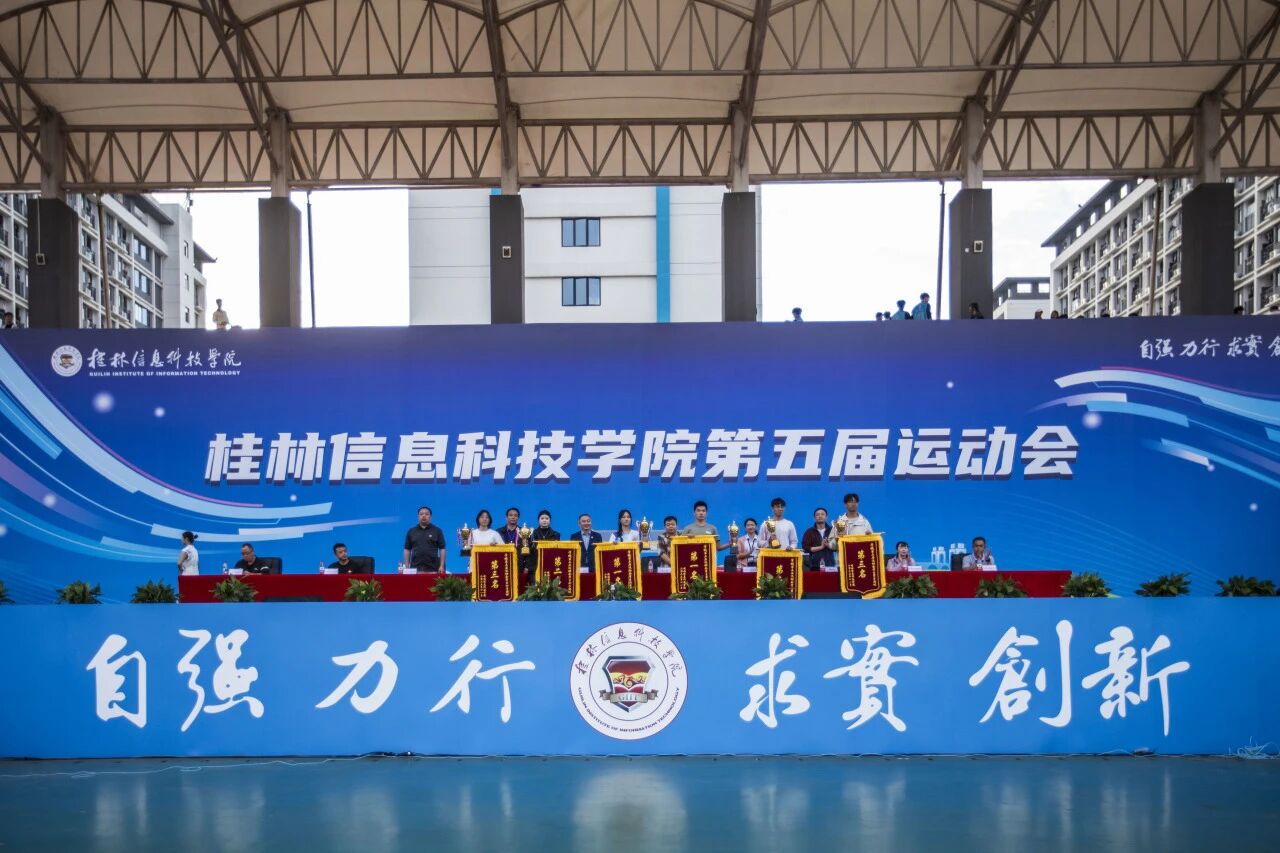 闭幕式上,运动会总裁判长周勇宣布了第五届运动会各项比赛成绩,主席台领导分别为获奖团队和个人进行颁奖。