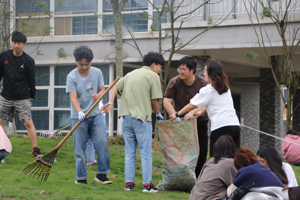 同学们在辅导员的带领下有序地排成两列,在认真聆听了后勤老师的注意事项后,有序领取了手套、垃圾袋、耙子等工具,对我系责任范围内的杂草和枯叶进行了认真仔细的清理,整个活动中同学们干劲十足、团结协作,充分展现了不怕累、不怕苦的良好精神风貌。