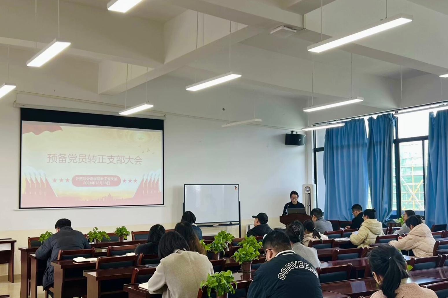 2024年12月18日,外贸与外语学院教工党支部在博文楼F512召开了预备党员转正大会。会议由学院教工党支部副书记冯文雄老师主持,支部全体党员参加了此次会议。