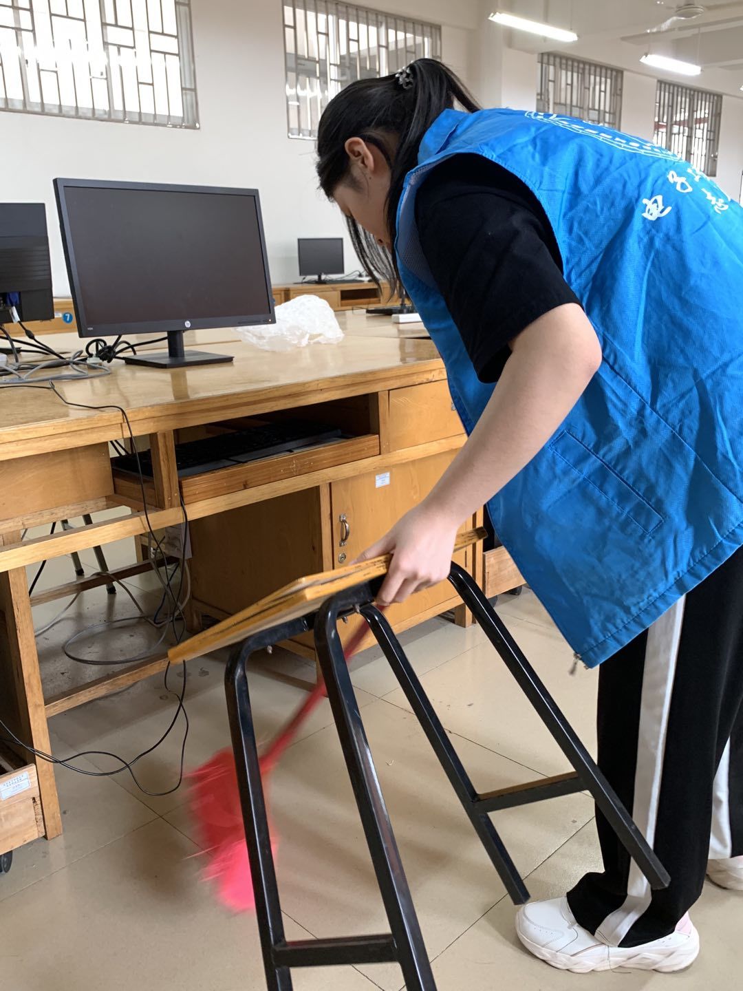 活动中,工作人员将志愿者们分成14个小组分别对41301、41304、42301等十四间实验室进行清扫。同学们认真、细心地打扫好实验室的每一个角落,个个都干劲十足,将实验室打扫的一尘不染,力求为学院的同学们营造一个舒适整洁的实验环境。经过一个多小时的辛勤劳动后,我们的实验室都变得干净整洁起来。