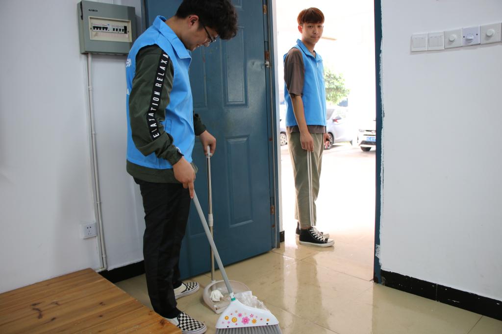 机电工程系组织学生干部帮助保洁阿姨维持教室清洁卫生,同学们热情高涨的投入到了活动中,大家拿出清洁工具积极地清理桌面、地面污渍和垃圾,整个过程分工明确,井然有序。