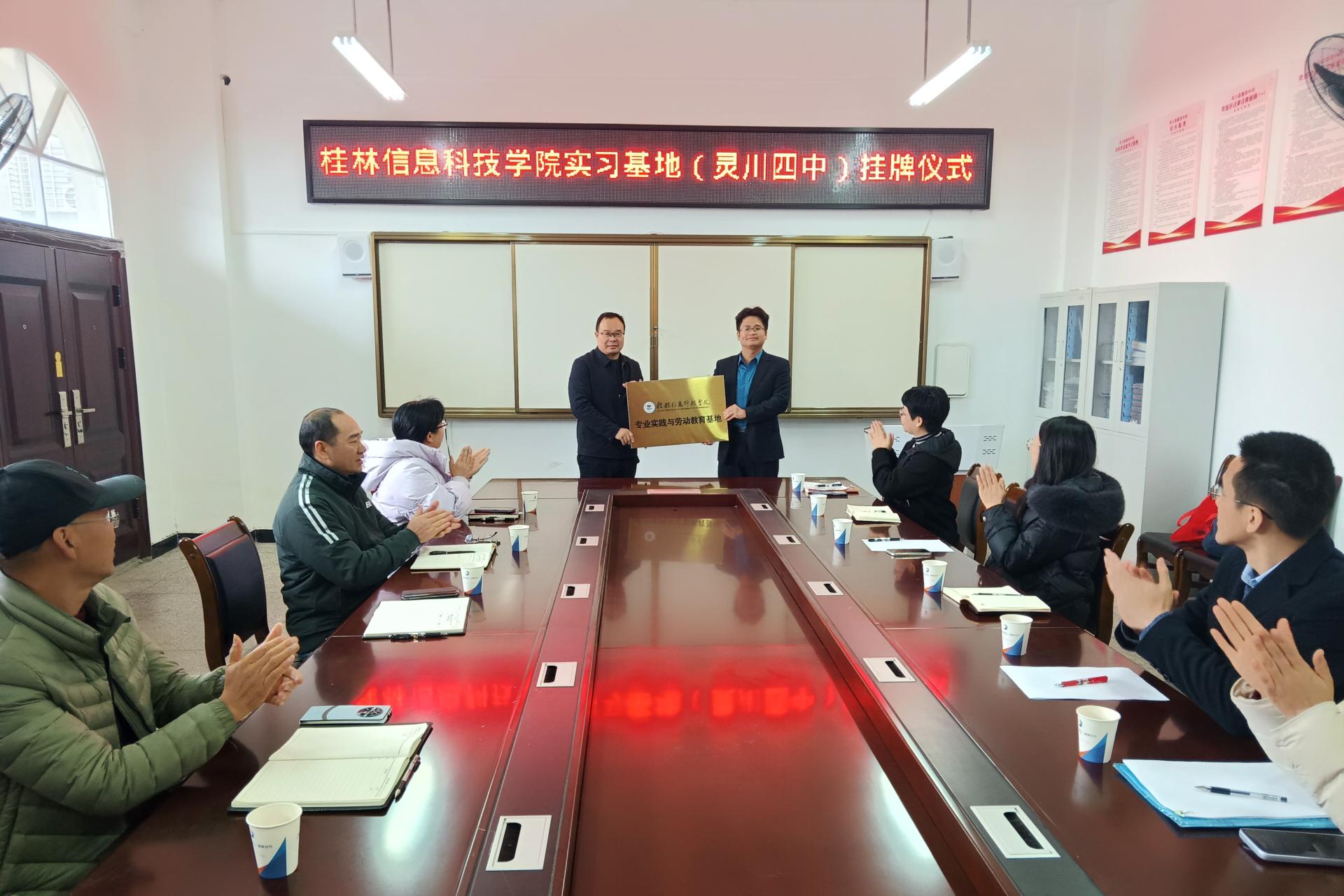 交流会上,秦校长首先对我院师生的到来表示欢迎,并对学校的教学质量、生源状况和学校管理等方面进行了详细的介绍,同时,对与我院共建实习基地,共同促进学生专业技能的提升理念予以肯定。赖安副院长也对灵川第四中学给学生提供实习机会和大力培养表示感谢,对学生取得的进步表示欣慰和由衷的高兴,并希望与灵川第四中学建立长效合作机制,加强沟通、交流,实现校校双赢。会后,双方举行“beat365中文官方网站专业实践与劳动教育基地”挂牌仪式。
