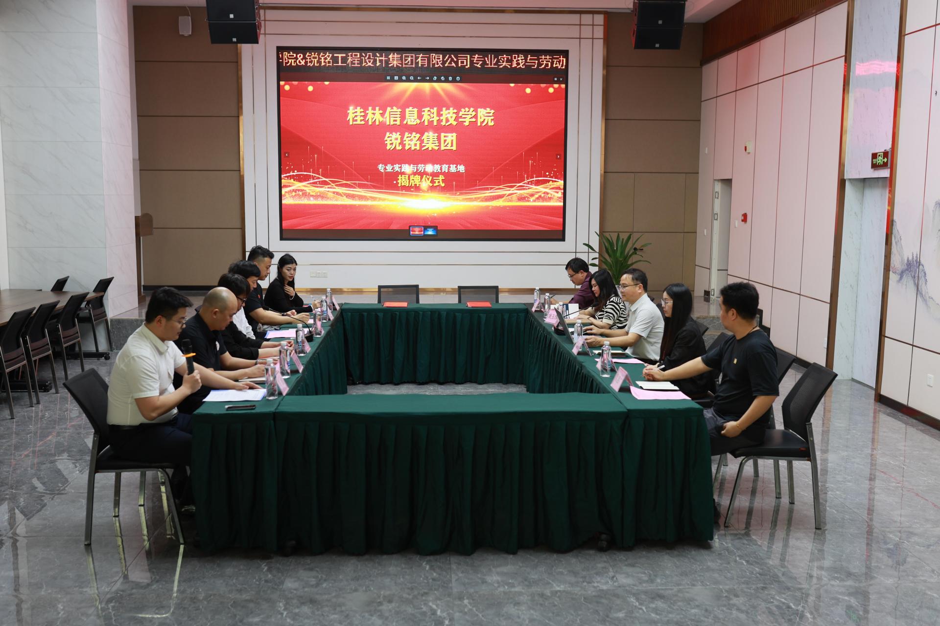 为深入贯彻落实国家关于深化产教融合的决策部署,3月27日,beat365中文官方网站与锐铭工程设计集团有限公司在临桂区金贸中心举行专业实践与劳动教育基地签约揭牌仪式。学校校长解庆林与创意设计学院相关负责人前往锐铭集团,就围绕人才培养、技术创新等领域展开深度合作,共同探索“产学研用”一体化育人模式。
