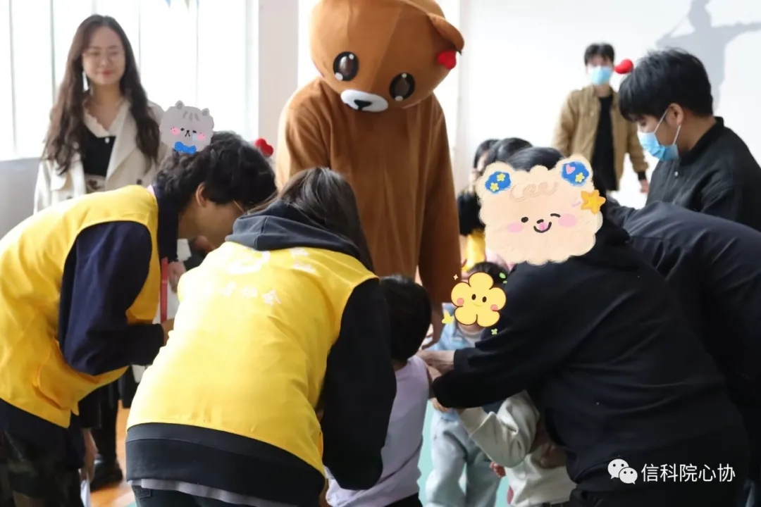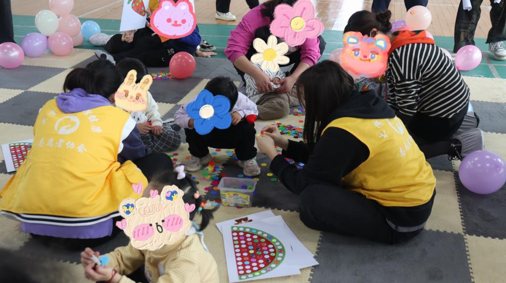 活动当天,志愿者们早早就来到现场为“星宝”们布置可爱的活动场所。活动开始后,志愿者们和儿童孤独症康复中心的老师们带着孩子们一起做了健身操,大家拍拍手、动动脚,把身体舒展开来。随后,家长和孩子一起进行了由志愿者们精心准备的互动游戏,过山洞、勇闯熊关、游戏消消乐、设计比赛、接力传球等一个个精彩的趣味游戏让在场的每一个孩子都积极愉悦地参与到活动中来,丰富多彩的节目更是让现场一片欢声笑语。孩子们在游戏的过程中逐渐和大学生志愿者们热络起来,也让志愿者们对星宝们有了更多了解。