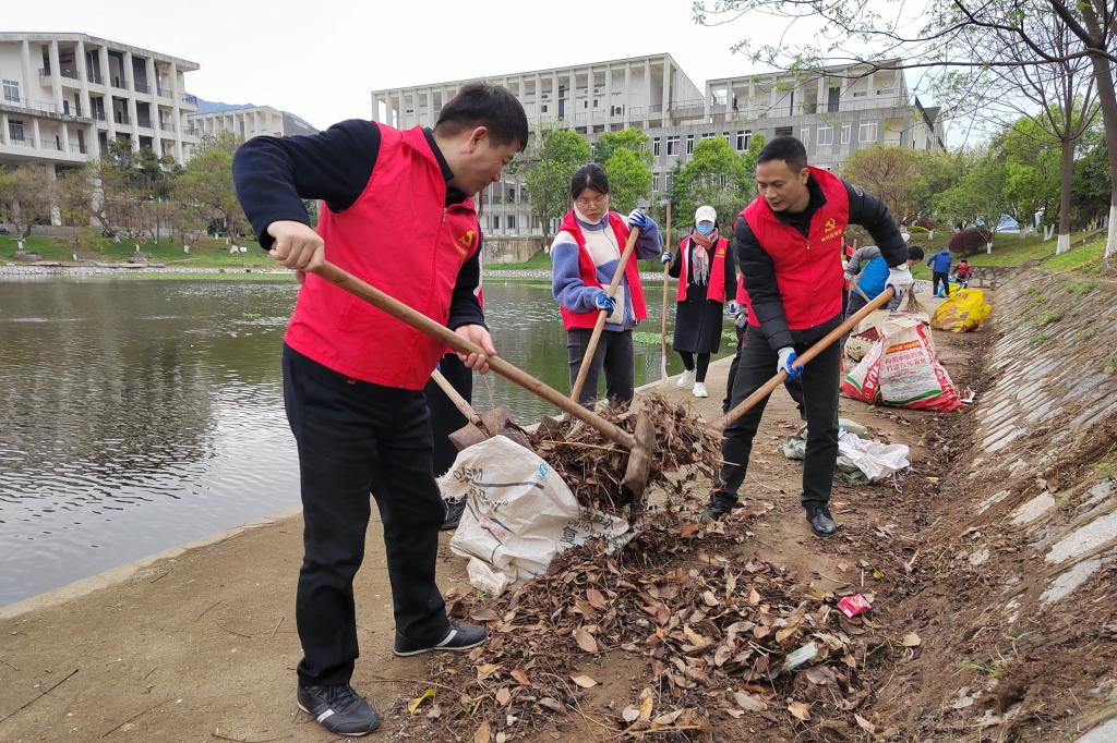 在活动过程中,党员同志们分工明确,对学校人工湖旁及周边树林的落叶、树枝、碎石和垃圾等进行清理打扫,校园卫生环境焕然一新。党员同志们热情高涨、细心负责,展现了团结协作、互帮互助的精神,并纷纷表示,将继续秉承为老师和学生们服务的态度,努力做一名教书育人、立德树人的新时代高校教师。