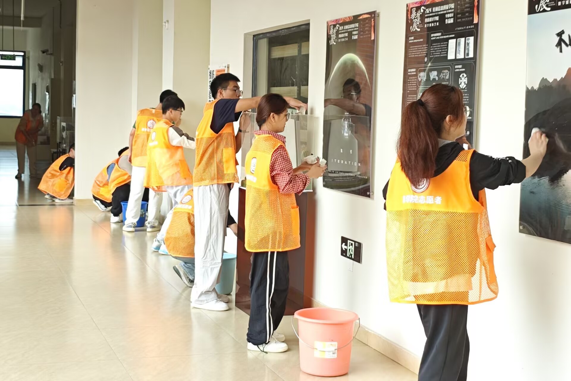 活动期间,同学们穿着统一的服装、配备充足的清洁工具,在接受了基础的清洁技能培训后,大家迅速行动,分工明确、协作默契,用手持抹布蘸取清洁剂,仔细地清除墙面上的脚印和污渍,对教学楼公共区域的杂物和地面上的垃圾都进行了彻底的清扫,不遗漏任何一处细节。经过数小时的共同努力,教室和走廊的面貌焕然一新,同学们劳动的身影在春季的校园里形成了一道亮丽的风景线。