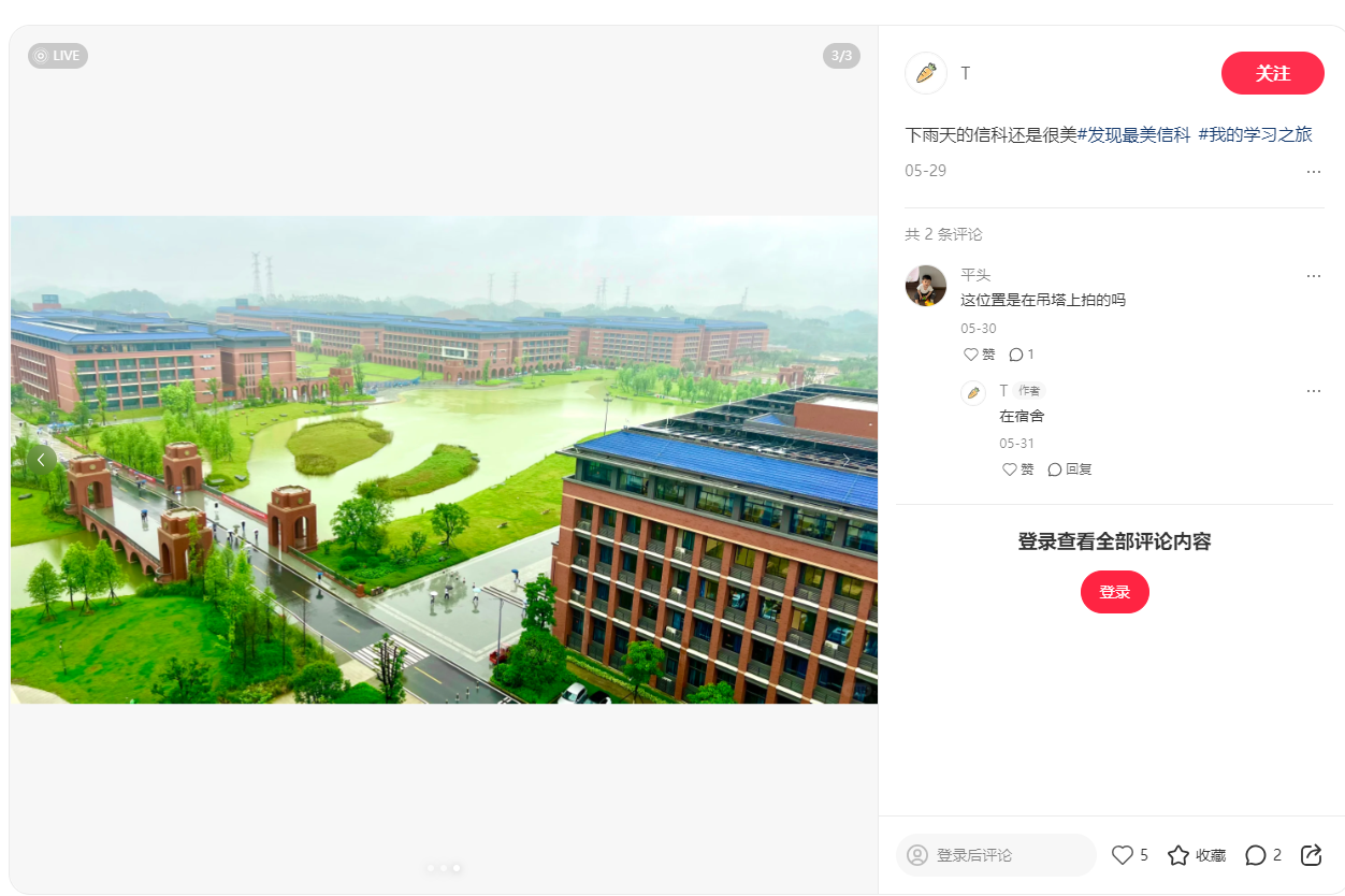 学生在小红书平台分享校园风光