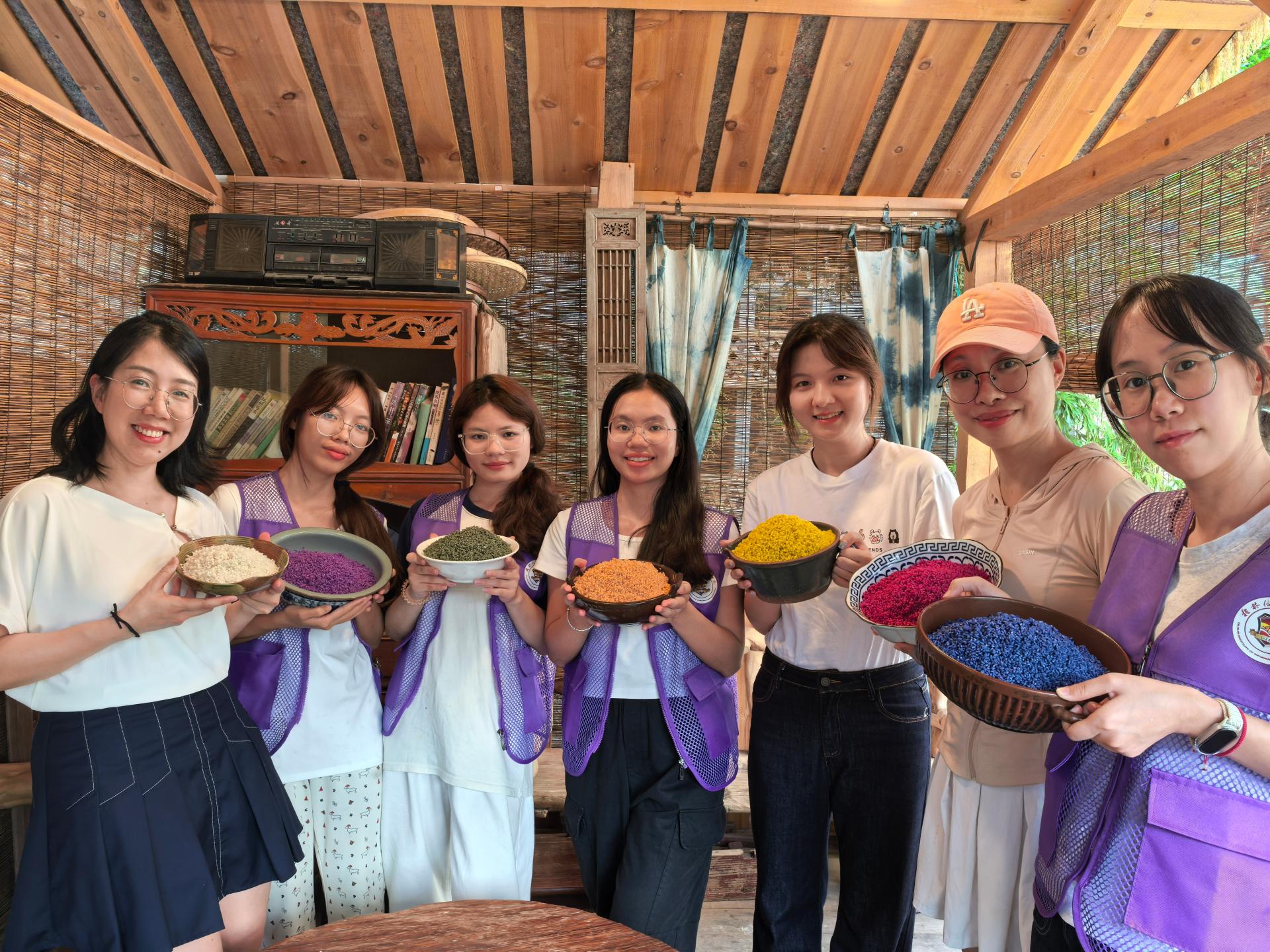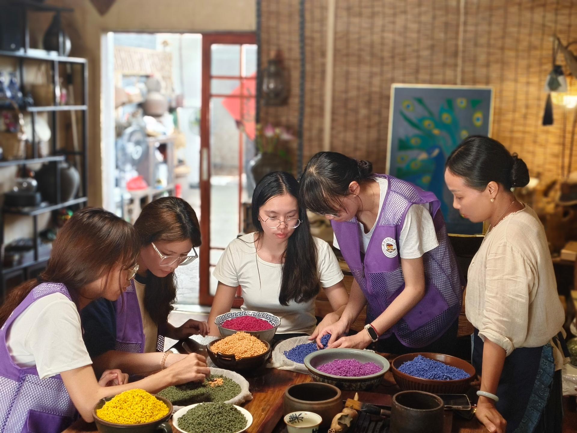 团队通过实地走访、非遗体验和深度访谈,深入探索少数民族文化的传承现状与创新发展路径。在实践过程中,成员们不仅亲身体验了传统油茶制作技艺和五色糯米饭染色工艺,更深刻领悟其中蕴含的民族智慧与文化精髓。基于专业视角,团队创新性地将数字化技术应用与“铸牢中华民族共同体意识”培育相结合,通过采访非遗传承人和制作新媒体作品等方式,探索“非遗+数字传播”的创新模式。这一实践既展现了各民族“像石榴籽一样紧紧抱在一起”的团结精神,又为少数民族文化的活态传承注入了时代内涵。