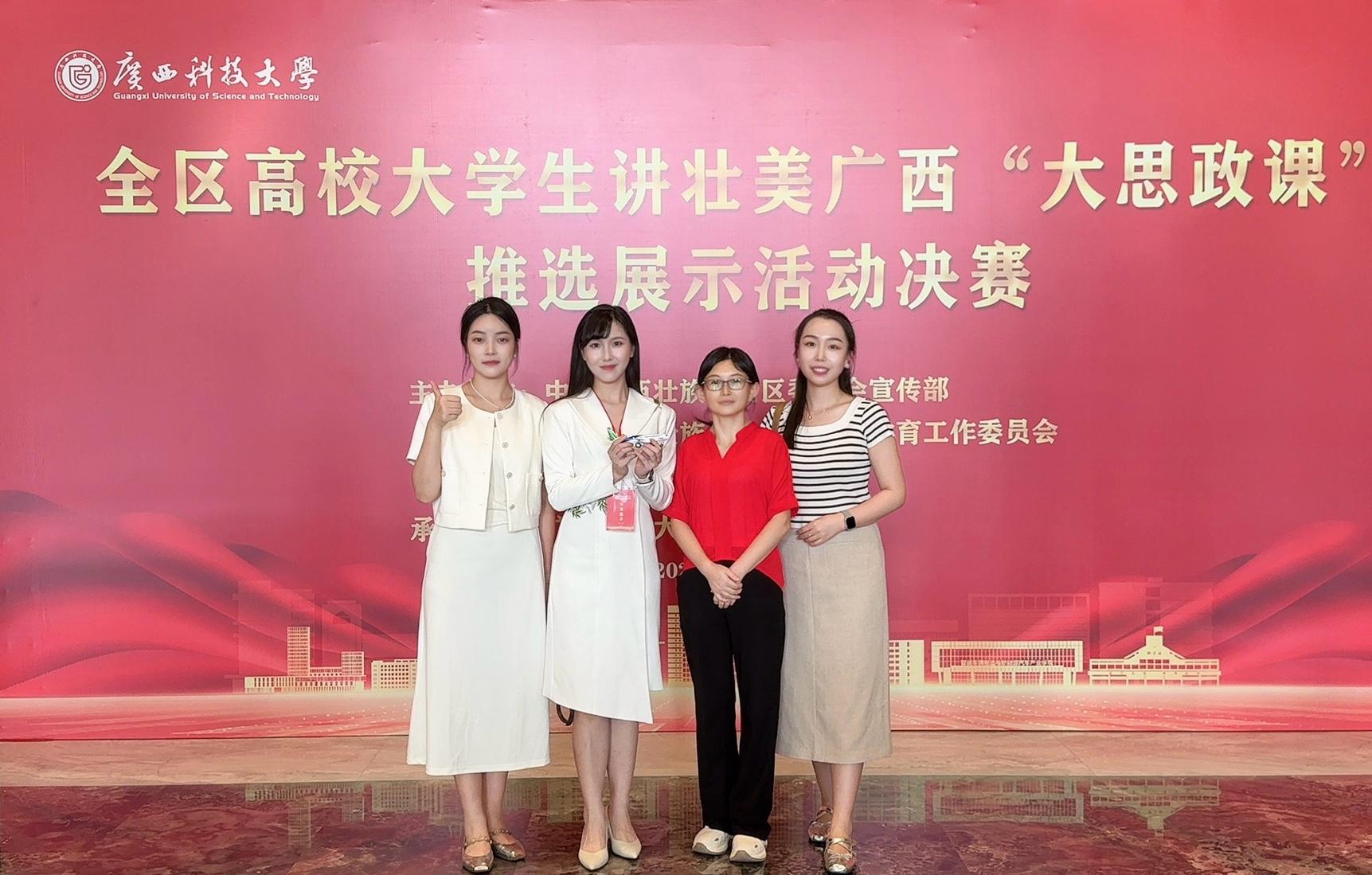 近日,由自治区党委宣传部、自治区党委教育工委、自治区教育厅联合主办的全区高校大学生讲壮美广西“大思政课”推选展示活动圆满落幕。beat365官网师生团队作品《让国产大飞机穿上中国鞋——八桂大地锻造航空轮胎“中国底气”》从全区187项参赛作品中脱颖而出,荣获二等奖。获奖名单本次活动以“以青春之我建壮美广西”为主题,自2025年5月启动以来,全区各高校积极响应。beat365官网马克思主义学院高度重视,组建了由甘韵涵同学担任主讲人,...