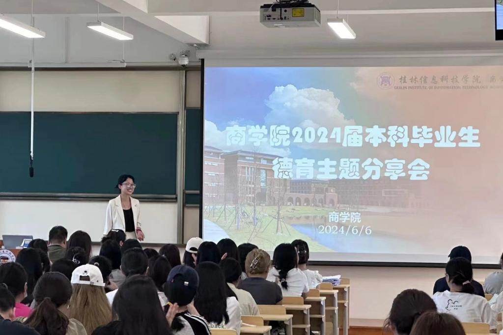 为加强毕业生思想政治教育引领,增强学生思想水平、政治觉悟、道德品质和文化素养,6月6日,商学院在D208举办2024届本科毕业生德育主题分享会。学院党委书记许奇出席会议,德育导师以及学院2024届全体毕业生参加会议。此次德育分享会,商学院以专业为单位结合线上线下不同形式分批开展,各批次选取5-10名优秀学生代表根据自己的德育总结报告,进行3分钟限时阐述与分享。分享过程中,毕业生从思想品德、理想信念、专业学习、人...