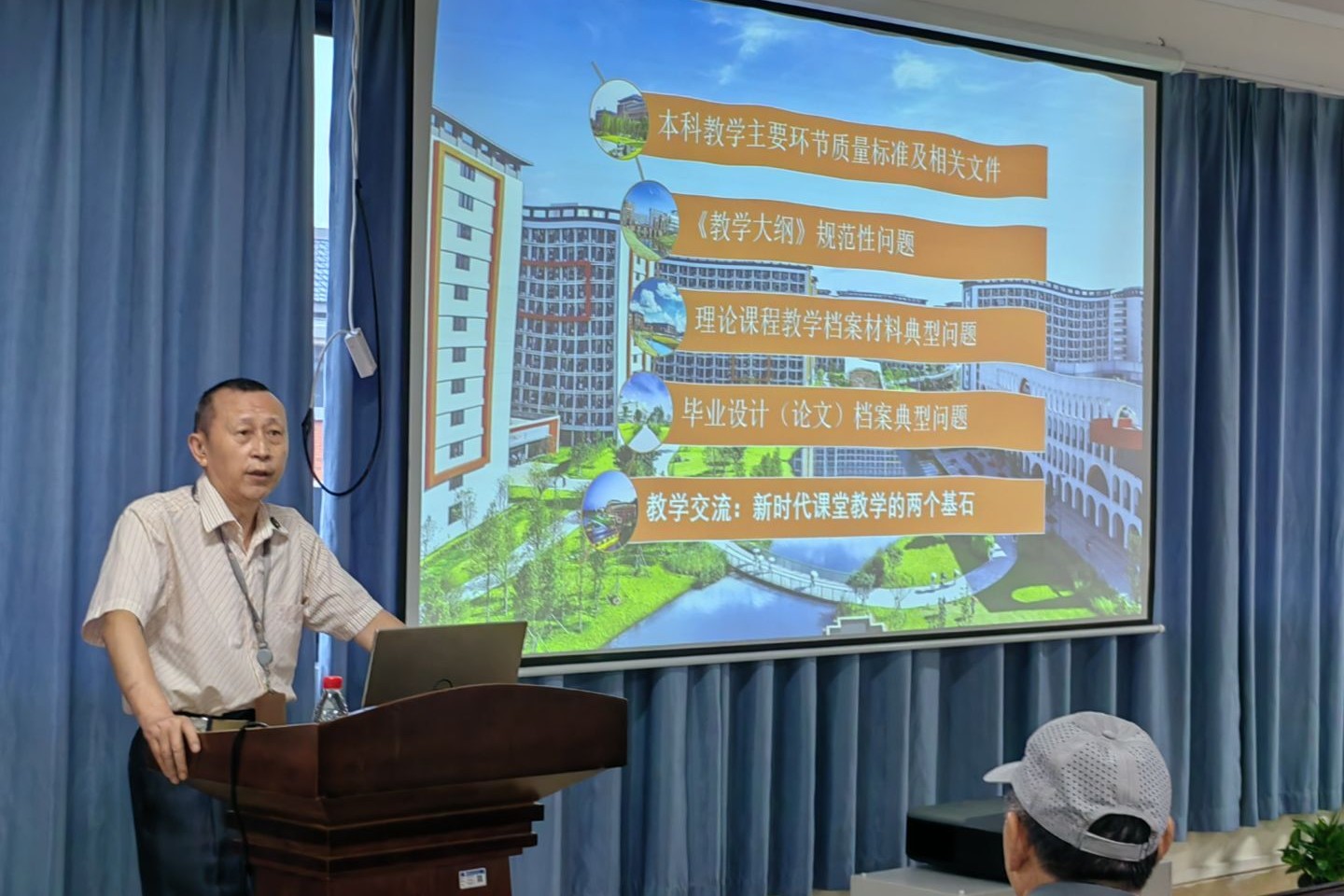 为迎评促建,助力教师规范教学材料,提升教学能力,促进教学创新,外贸与外语学院于7月16日至7月28日举办了“从基础到创新:教学材料规范与教学能力提升系列讲座”活动。此次活动邀请了教学质量监控中心王先教授、外贸与外语学院赵相忠教授、韦汉教授、韦储学教授主讲,共开展四次主题讲座,外贸与外语学院全体教职工参与。首场讲座《本科毕设指导工作的几点感悟与认识》由赵相忠教授主讲。在讲座中,赵教授结合自身丰富的指...