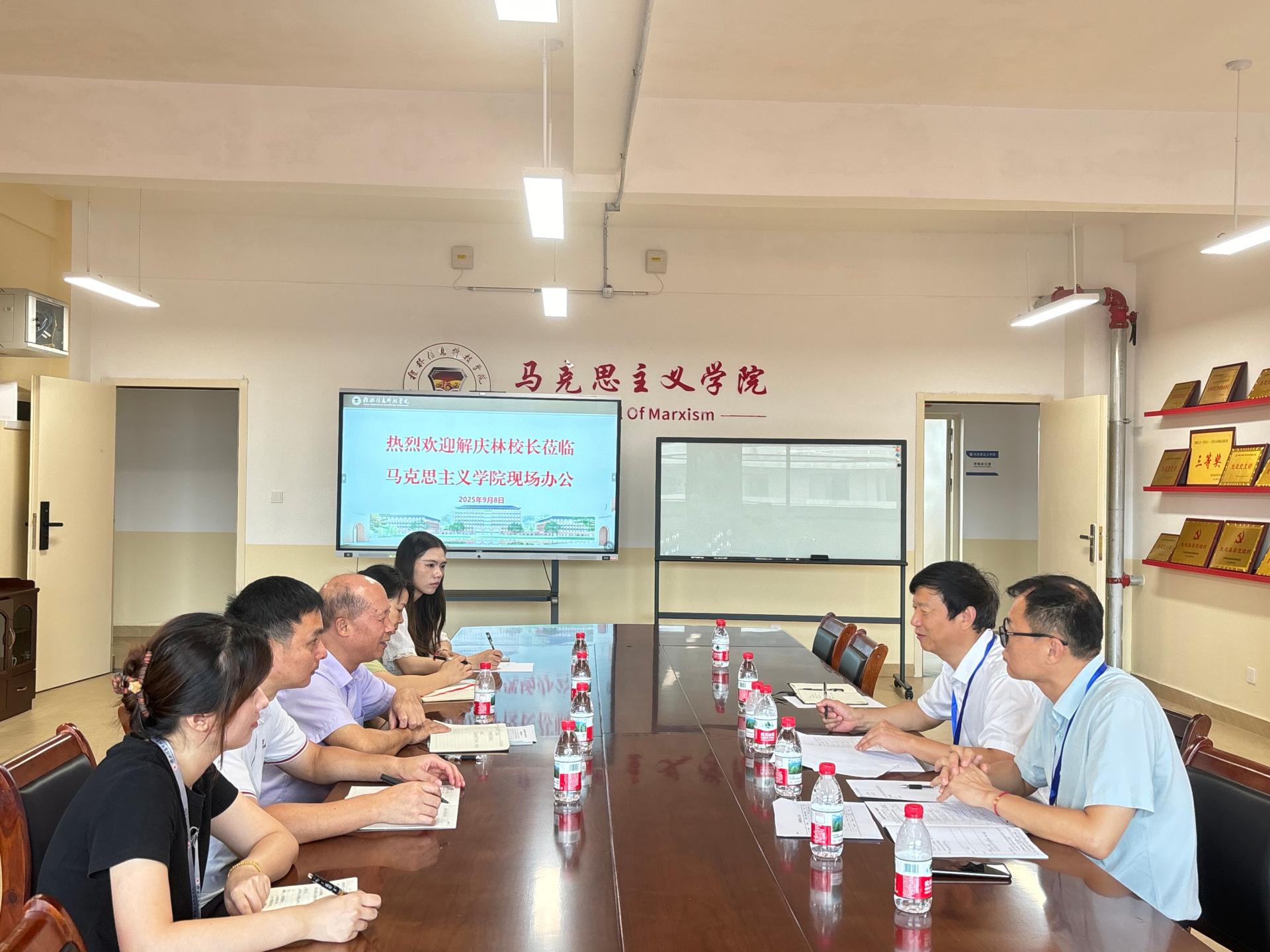 为确保新学期教学工作平稳有序运行,全面掌握教学准备和运行情况,及时发现问题并推动解决,持续提升教学质量,根据学校《校质控〔2025〕20号》通知要求,9月5日,信息工程学院在院长黄建灯、院长助理刘欣和龙丹的带领下,组织开展了2025–2026学年第一学期期初教学检查工作。本次检查采取抽查方式进行,共10位院级督导成员和3位正副院长参加,重点对本学期课程的教学材料、2024–2025学年第二学期的教学档案,以及2024届、2025...