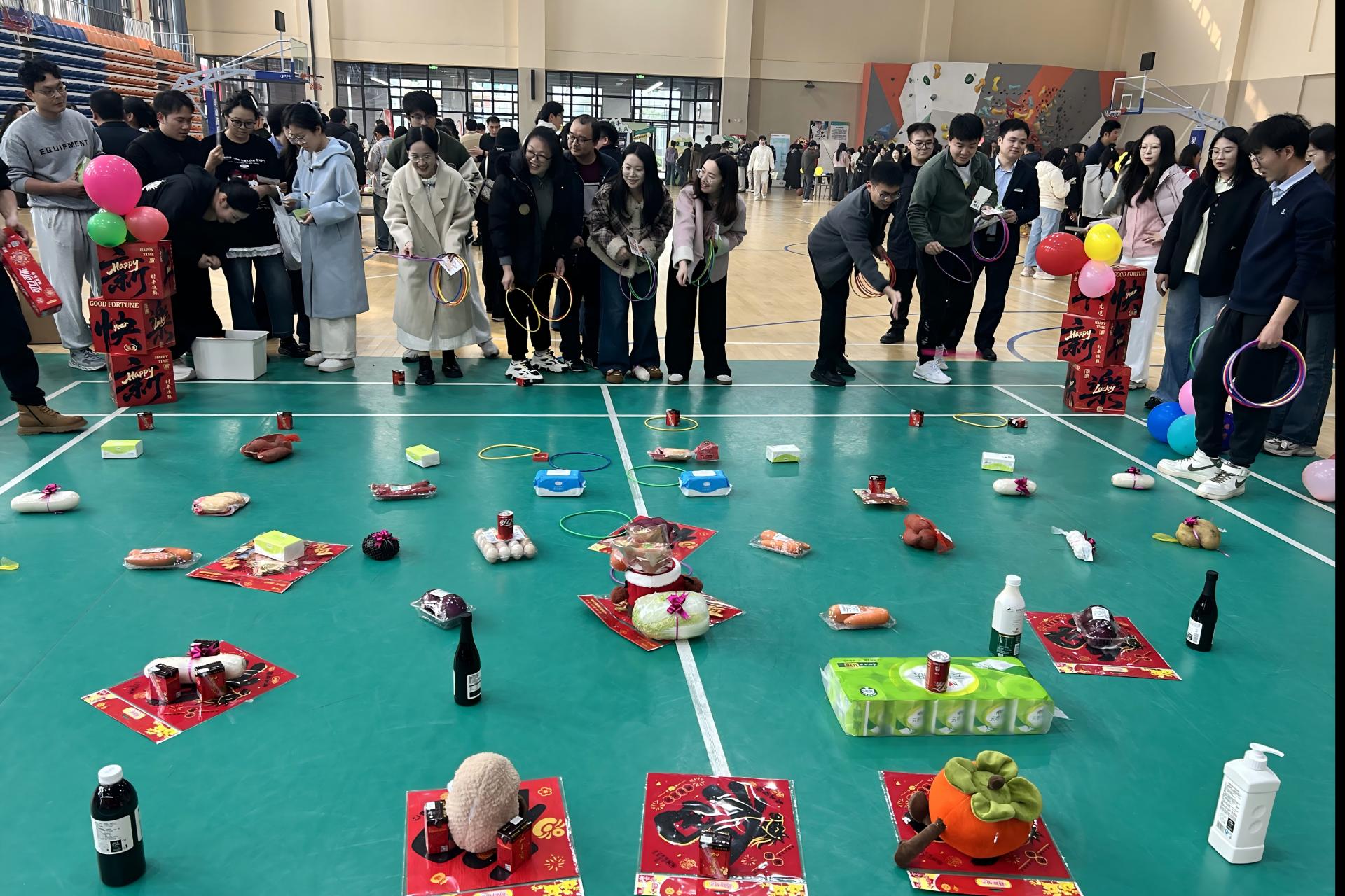 1月16日,由校工会主办、机电工程学院分工会承办的“龙马迎春·缘聚校园”趣味联谊游园活动在行健楼有序开展,近400名教职工欢聚一堂,在趣味互动中传递新春祝福,在团队协作中凝聚校园情谊,为冬日校园注入了满满的生机与活力。布置活动现场本次游园活动以“龙马精神”为核心脉络,精心设计了一系列兼具趣味性与文化寓意的团队协作及竞技项目。“策马同心”项目中,教职工们手捧心形气球默契配合,在平衡与协作间传递温情;“福...
