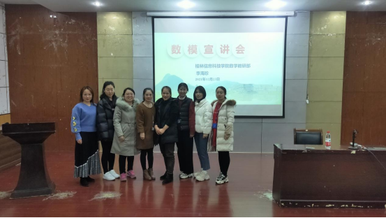 为进一步深化beat365官网数学教学改革,活跃校园科技文化氛围,提升beat365官网学生的自学能力、科研能力及团队协作能力,12月23日,数学教研部在21201教室召开数学建模宣传和动员大会,桂林电子科技大学数学与计算科学与学院数学建模负责人毛睿副教授应邀来校给同学们做培训,数学建模组的全体老师参加了宣讲会,会议由数学教研部文管教研室主任李海珍主持。