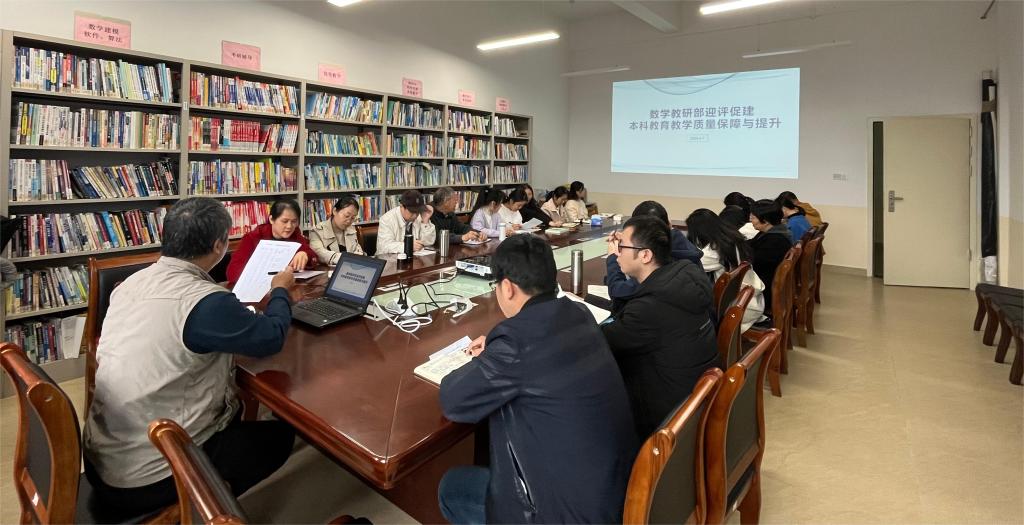 为进一步推动beat365官网“迎评促建”工作,4月7日下午数学教研部在博文楼525会议室开展了本科教学质量保障与提升专题会议,数学教研部主任黄坚主持,全体教师参加。