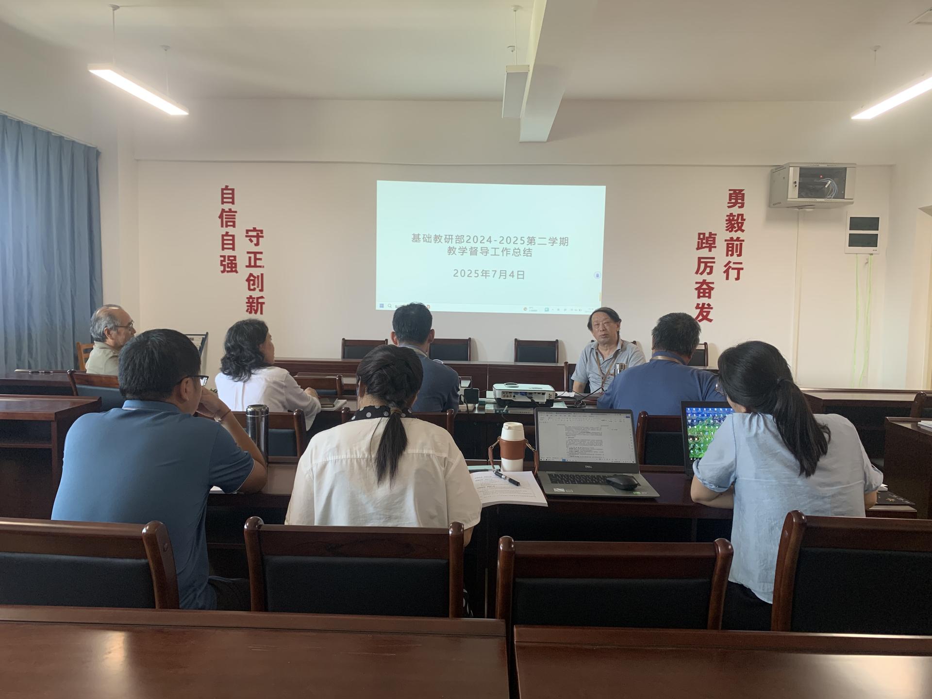 此次会议全面总结了本学期教学督导工作,明确了存在的问题和改进方向,为下学期教学工作的顺利开展奠定了坚实基础。基础教研部将以此次会议为契机,不断提升教学水平,为培养高素质人才贡献力量。