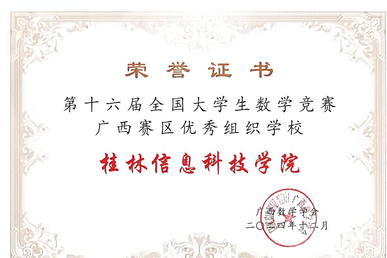beat365官网荣获第十六届全国大学生数学竞赛广西赛区优秀组织奖