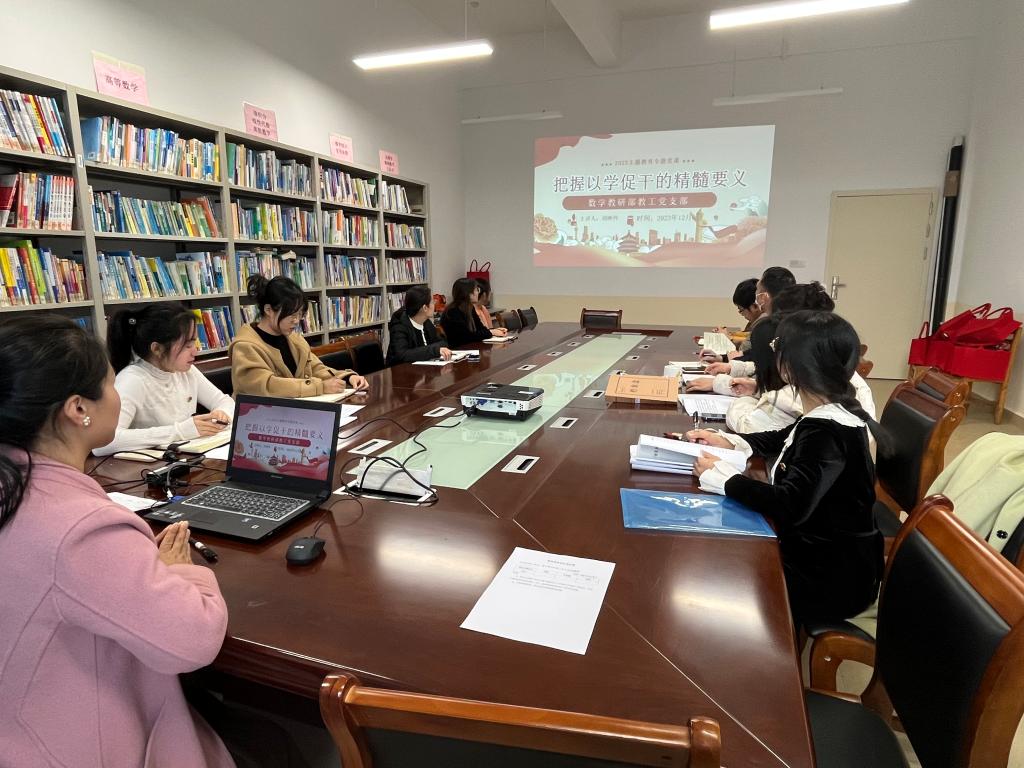 为推进主题教育走深走实,充分发挥党支部战斗堡垒作用,12月8日下午,数学教研部教工党支部书记刘映伶在博文楼525会议室以“把握以学促干的精髓要义”为题讲授专题党课,支部全体党员参加了会议。